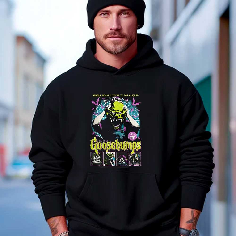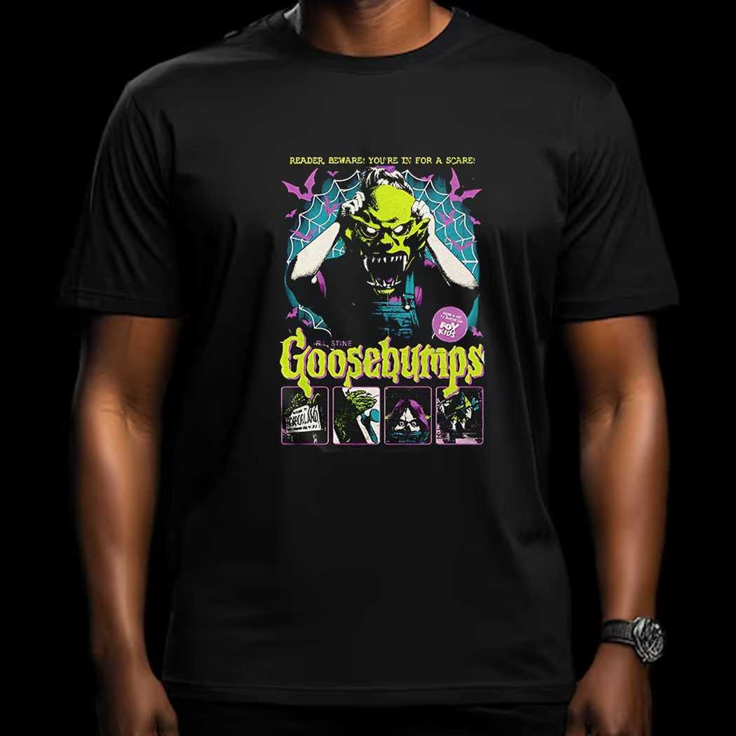 .If you’re a fan of spine-tingling tales and nostalgic thrills, then the “Reader Beware You’re In For A Scare” Goosebumps shirt is a must-have addition to your wardrobe. This iconic phrase, synonymous with R.L. Stine’s beloved series, captures the essence of childhood fears and the excitement of reading stories that send shivers down your spine.