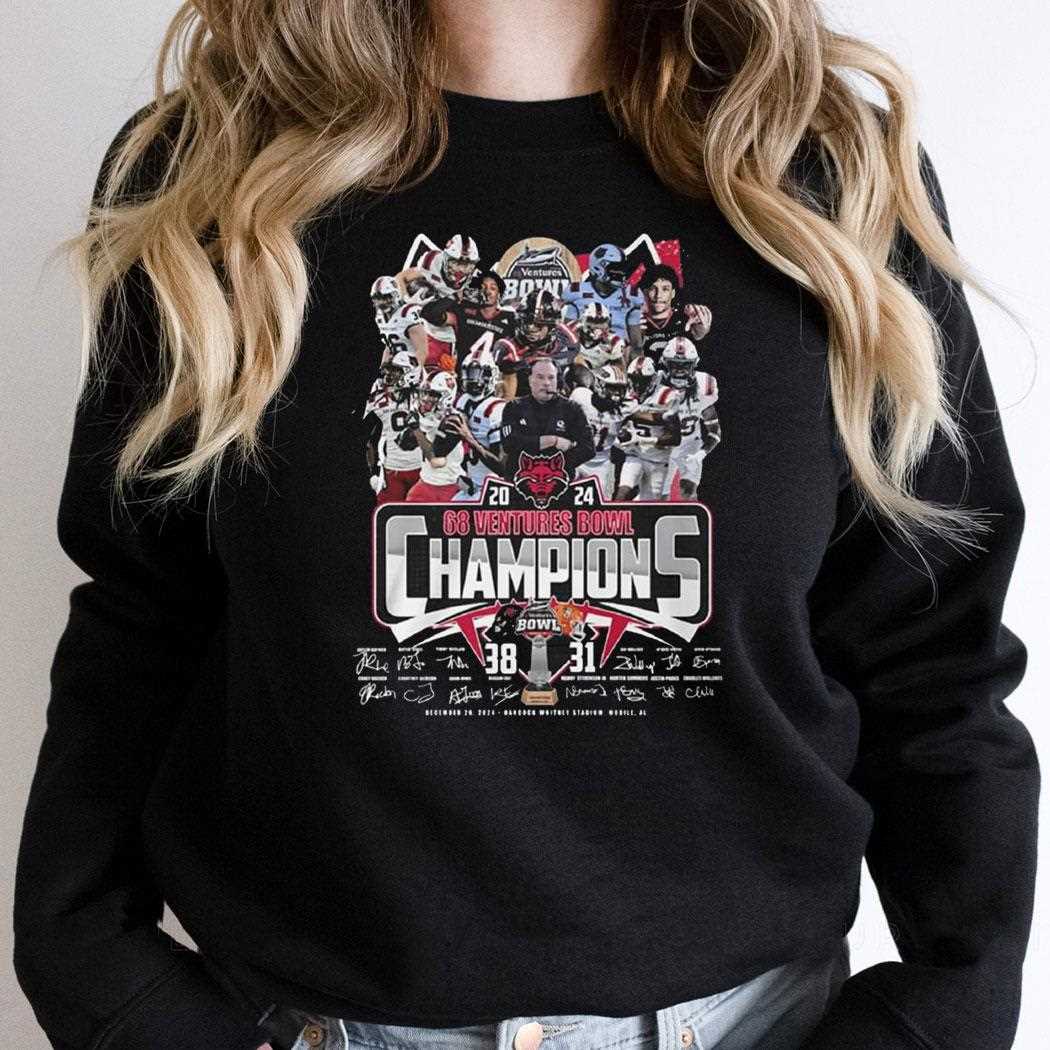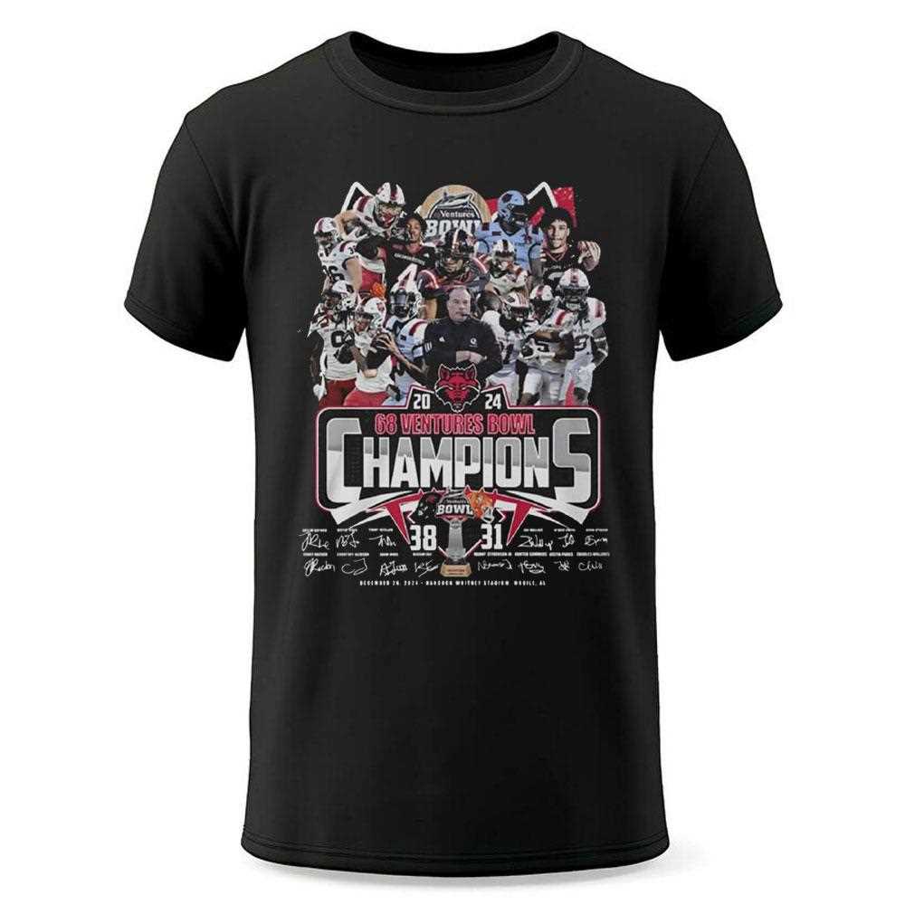 Wearing the exclusive 68 Ventures Bowl shirt is more than just a fashion statement; it’s a badge of honor for fans who witnessed this unforgettable clash. The design captures the essence of this monumental game, celebrating every touchdown and strategic play that led to the Red Wolves’ triumph. Whether you were cheering from the stands or watching from home, this shirt symbolizes your unwavering support and pride for your team.
