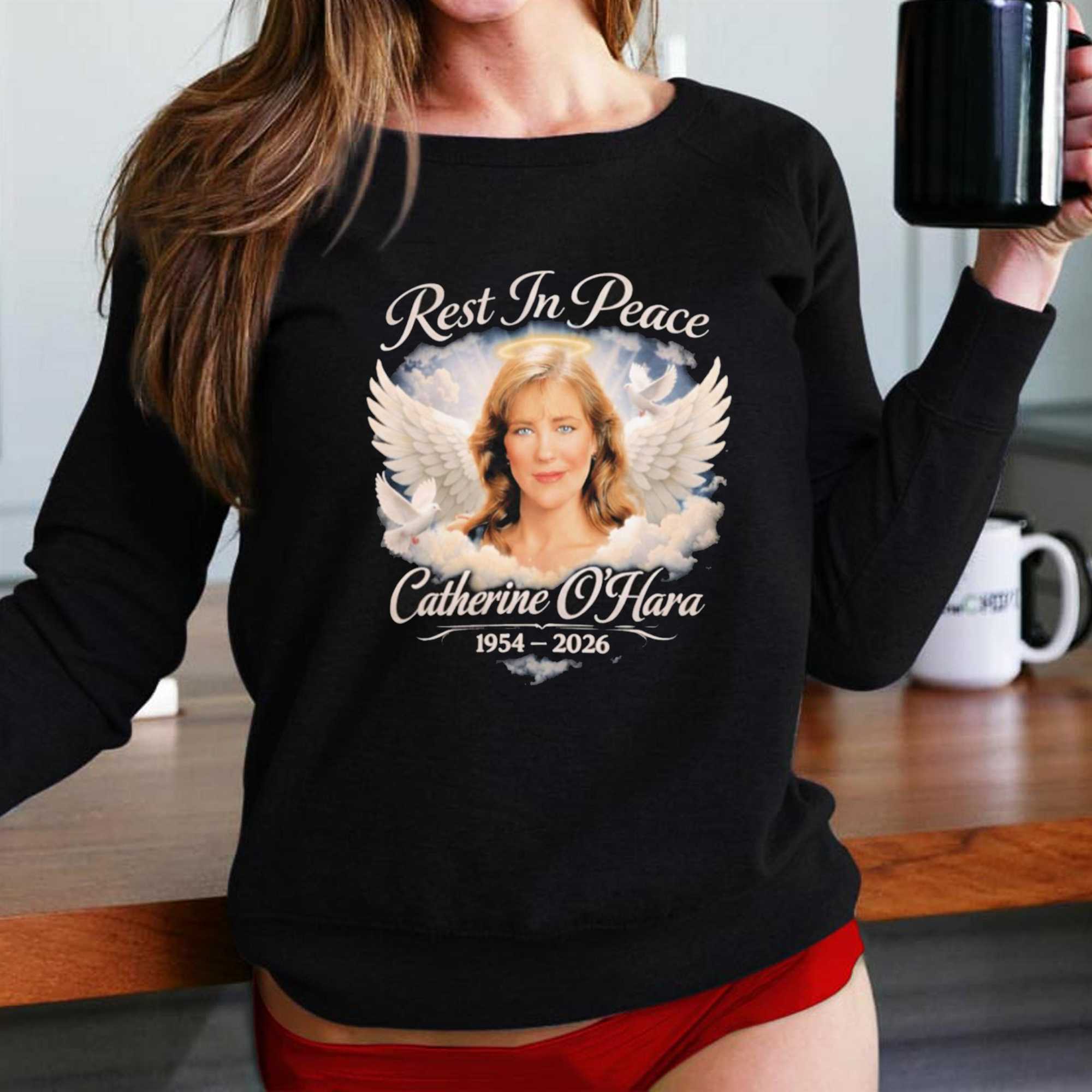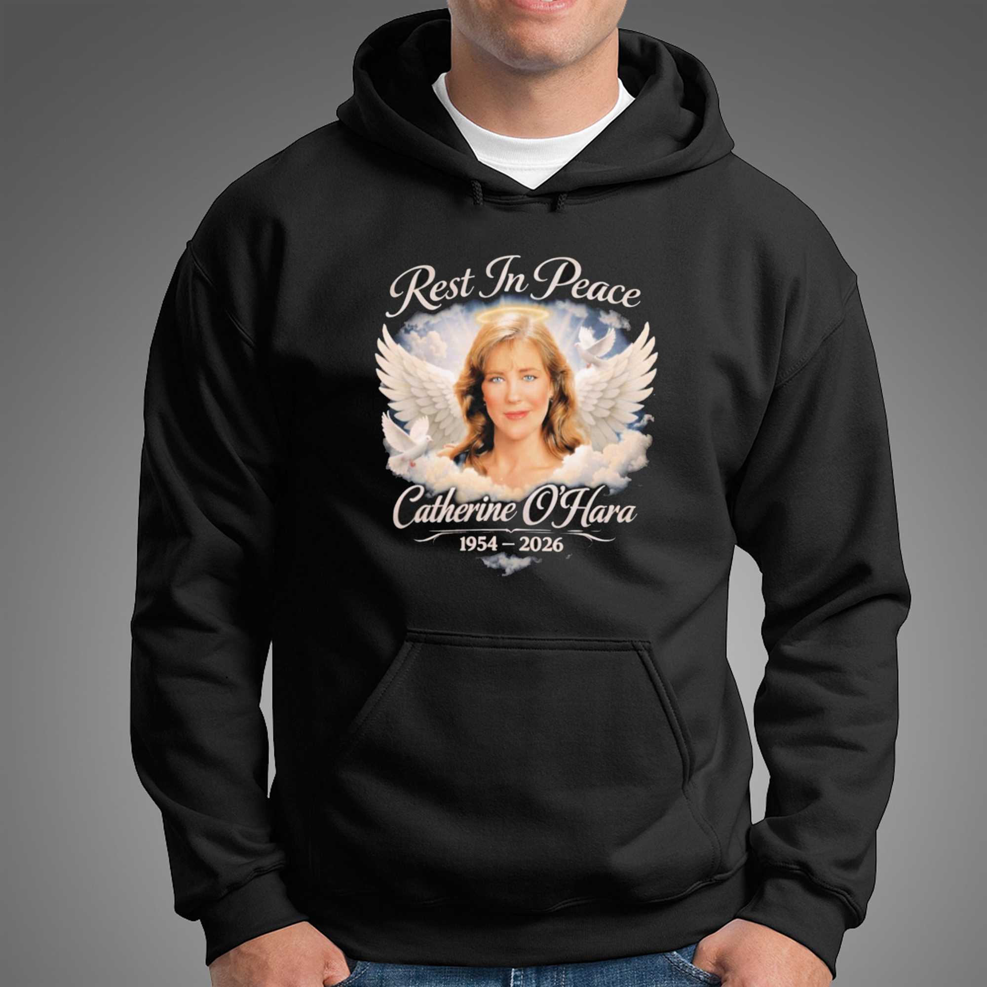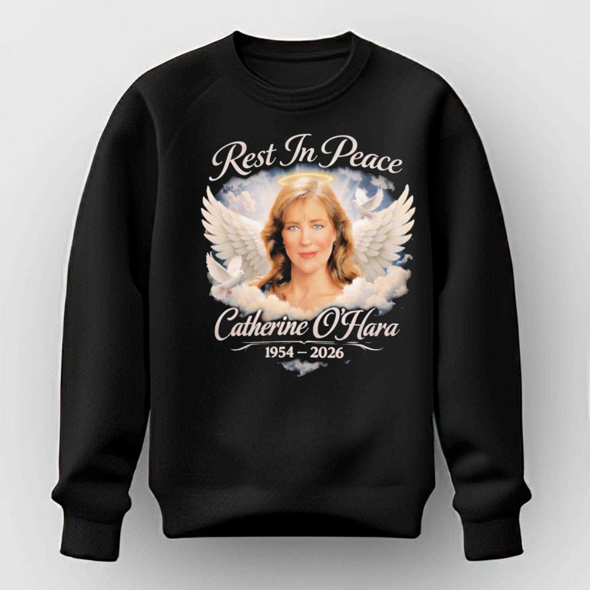 Celebrate the eternal charm and the incredible talent of a comedic genius with the Rip Catherine Anne Ohara Tee. This design is a beautiful and atmospheric tribute to the woman who has brought so much joy and laughter to audiences across generations. Featuring a stunning, airbrush-style portrait of Catherine O’Hara in a classic “Rest in Peace” (or “Rest in Power”) theme, the artwork captures her grace and her expressive range. The design is framed by soft, angelic imagery and elegant typography, creating a look that is both respectful and celebratory. It’s a must-have for fans of Schitt’s Creek, Home Alone, and the whole SCTV legacy. Set on a high-contrast black background, the warm tones of the graphic create a visual that is as soulful as her performances. The tee is crafted from premium, ultra-soft cotton, providing a luxurious feel and a breathable fit for all-day wear. It pays tribute to the “Moira Rose” of our hearts, reminding us that her legend will live on “forever and ever.” This is a standout piece that brings a touch of classic soul and sophisticated humor to your wardrobe. Show your appreciation for a woman who redefined what it means to be funny. Don’t let this tribute pass you by—grab it while you can. Secure your piece of comedy history and buy the Rip Catherine Anne Ohara Tee right now!. T-shirt !