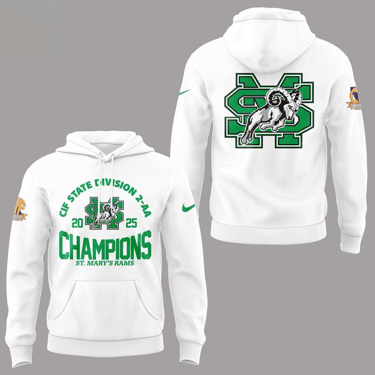 - The vibrant colors on this Saint Marys Ram Cif State Division 2-aa Champions 2025 Tee Hoodie will never fade and is machine washable for easy care.