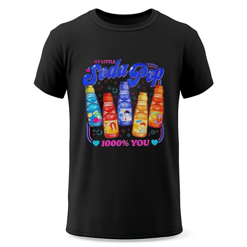 Quench your thirst for style with this fun and vibrant t-shirt! Featuring a lineup of “My Little Soda Pop” bottles inspired by Saja Boys and Huntrix, this colorful and cute design is a perfect, playful piece of fan merch. This shirt is soda-licious! The perfect, fun-loving tee for any dedicated fan. Get yours and add a pop of color to your wardrobe!.