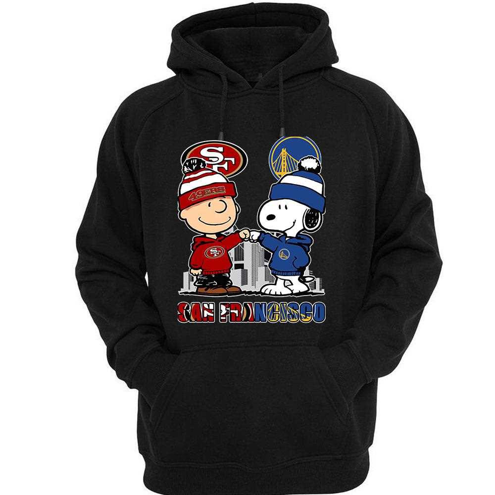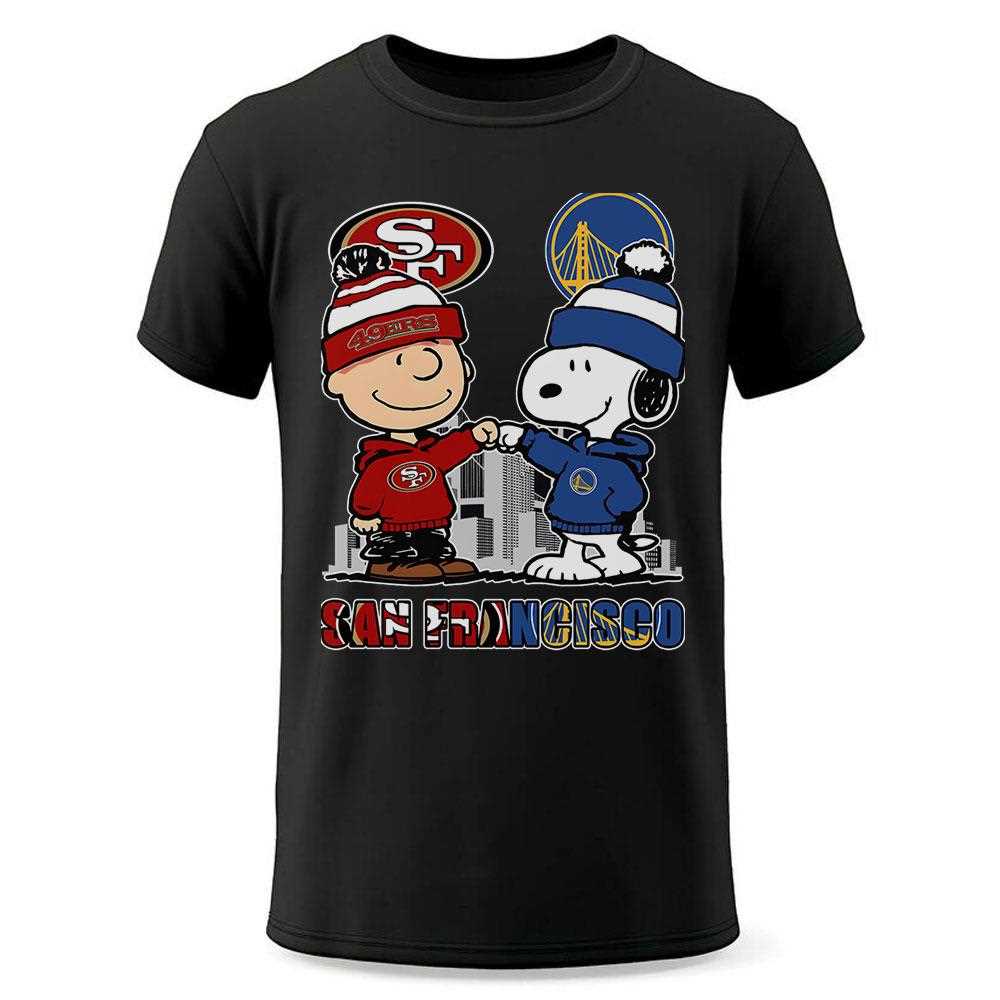 San Francisco 49ers And Warriors Peanuts Fist Bump T-shirt