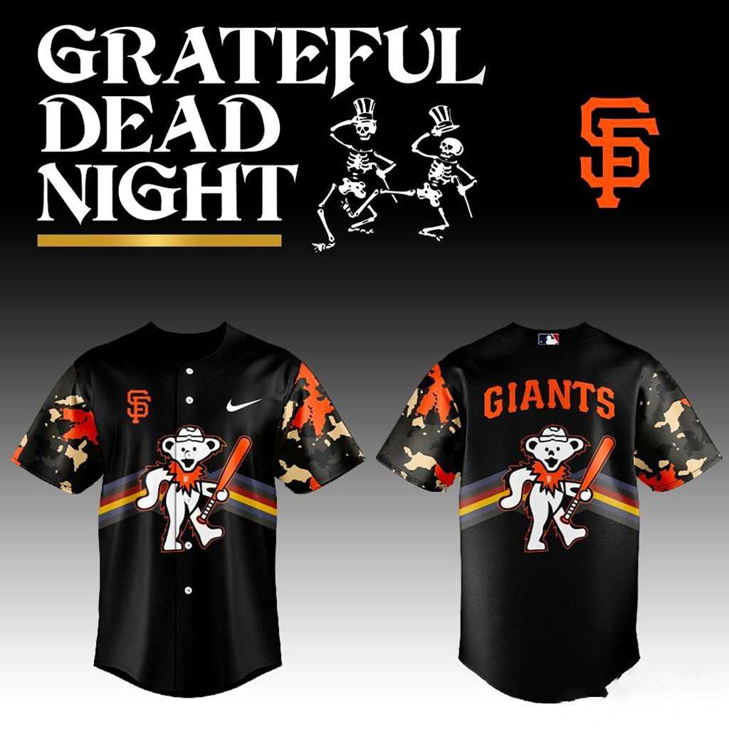 Gear up for a truly unique event with the San Francisco Giants Grateful Dead Night 2026 Baseball Jersey, celebrating the fusion of legendary music and America’s favorite pastime, adorned with iconic imagery for an unforgettable look.