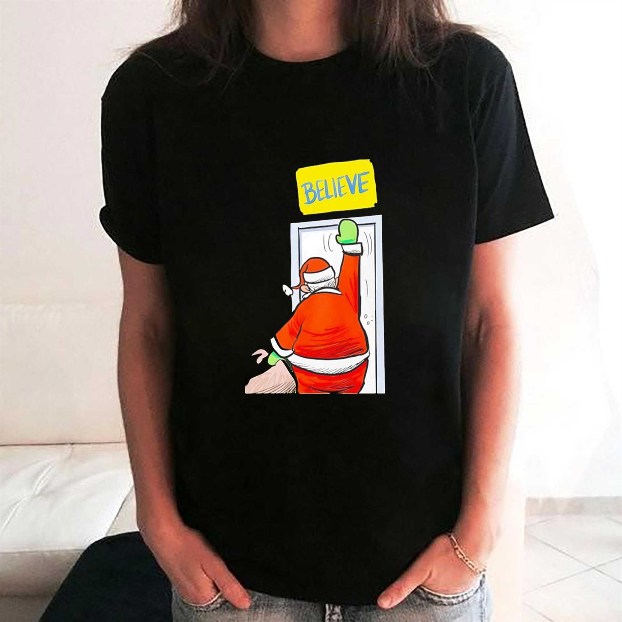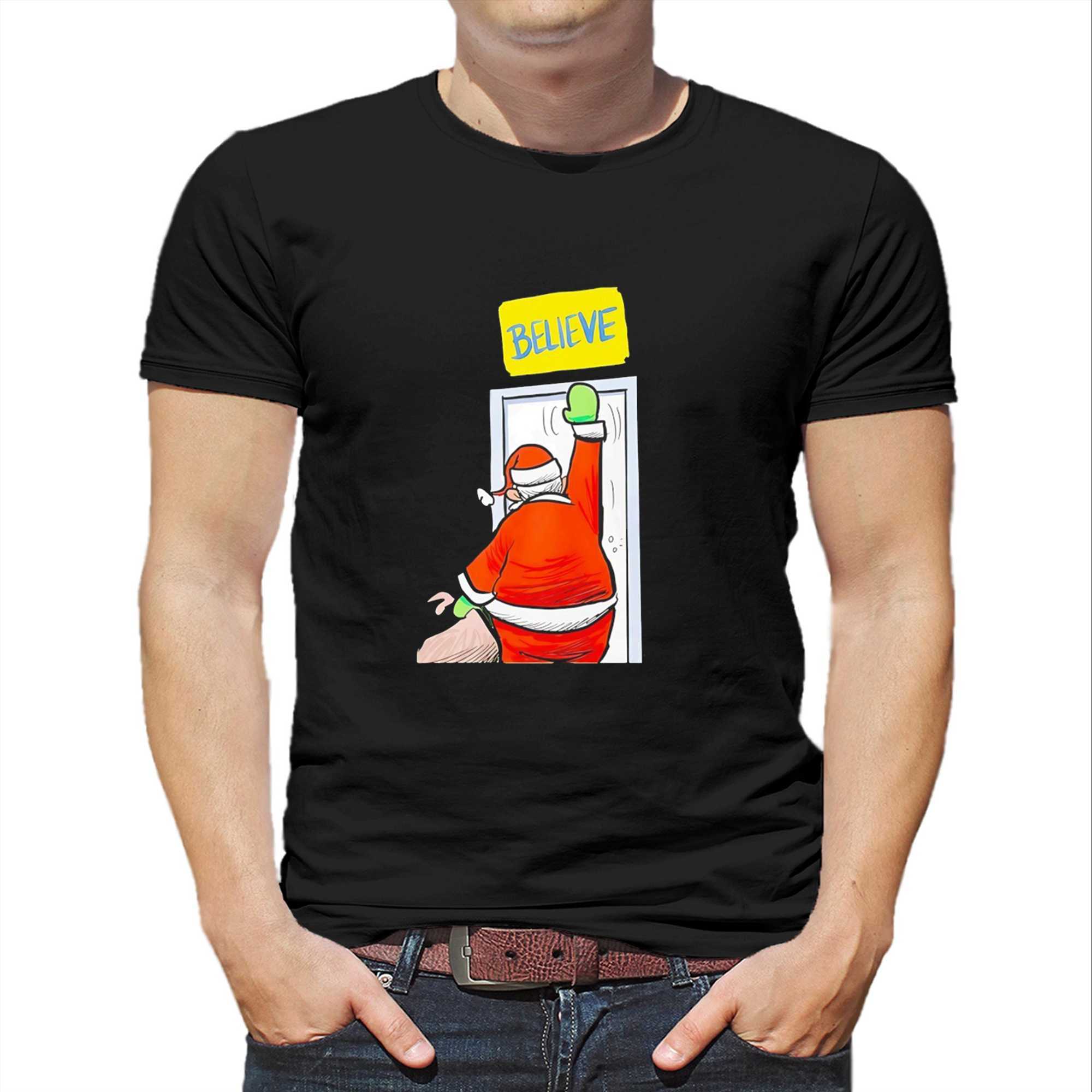 Bring the ultimate message of hope and holiday cheer to your wardrobe with the Santa Believe Ted Lasso Tee. This design is a heartwarming crossover between the world’s favorite coach and the most magical time of the year. Featuring a charming illustration of Santa Claus holding up the iconic, yellow “BELIEVE” sign, this shirt is a beautiful tribute to the spirit of optimism and kindness that defines both Christmas and the hit series “Ted Lasso.” It’s the perfect attire for holiday parties, family gatherings, or just spreading some positivity during the winter months. The bright yellows, reds, and greens of the graphic pop vividly against the deep black background, creating a festive look that is both fun and meaningful. This tee is crafted from a soft, premium cotton blend, offering a cozy and comfortable fit that is perfect for the holiday season. The high-quality print is designed to stay bright and clear, year after year. It represents the idea that no matter how difficult the season, believing in yourself and others is the greatest gift of all. This is an essential piece for any “Diamond Dog” or fan of heartwarming holiday apparel. Whether you’re on the “Nice List” or just a fan of AFC Richmond, this shirt is a guaranteed mood-booster. Celebrate the season with the spirit of a champion. Believe in the magic of the holidays. Order your Santa Believe Ted Lasso Tee today and spread the cheer!. T-shirt !