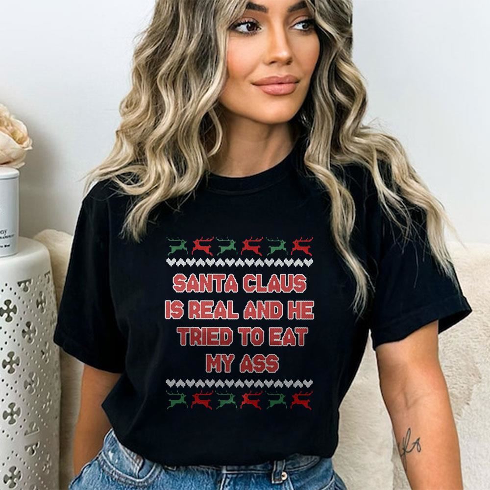 Remember: Keep an open mind as we navigate through this intriguing topic. Let’s separate fact from fiction and explore the fascinating world where Santa Claus meets peculiar fashion choices.. The Santa Claus Is Real And He Tried To Eat My Ass Sweatshirt are made from a high quality wool fabric that allows the sweater to breath and regulate your body’s temperature. This active fibre is designed to react to your body’s temperature, keeping you warm in the winter and cool in the summer.