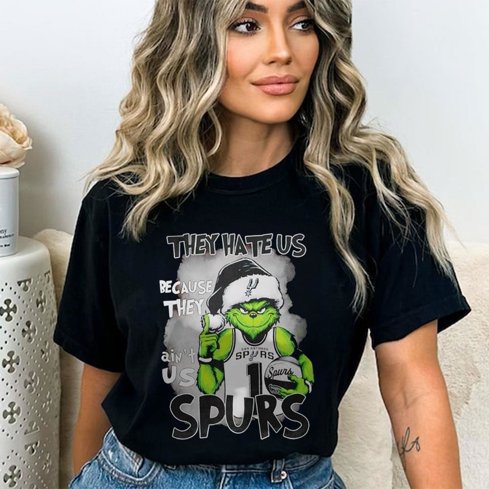 Why settle for a generic holiday shirt when you can proudly display your team spirit at the same time? The Santa Grinch They Hate Us Because They Ain’t Us San Antonio Spurs Shirt is a must-have for any true fan. Whether you’re attending a game, watching from home, or simply spreading some festive cheer, this shirt is sure to make a statement.
