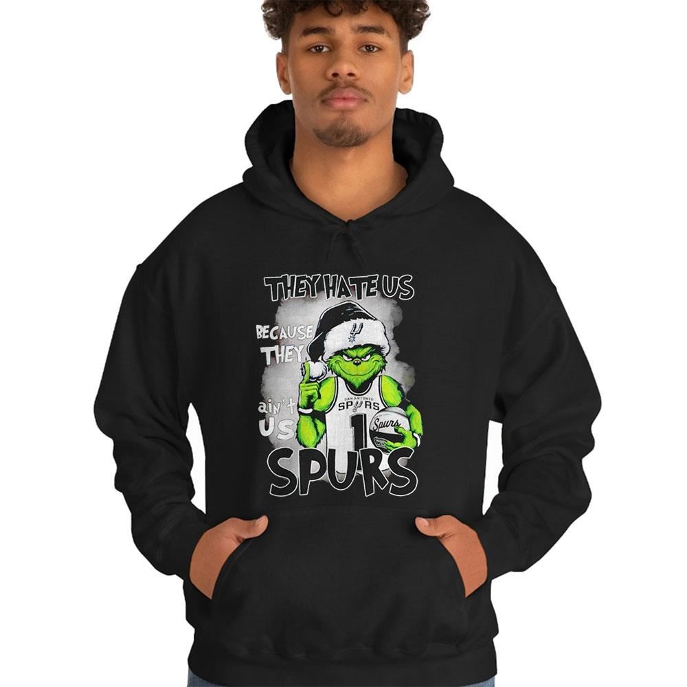 .Introducing the Santa Grinch They Hate Us Because They Ain’t Us San Antonio Spurs Shirt – the perfect way to show off your love for both the holiday season and your favorite basketball team! This unique shirt combines the iconic Santa Grinch character with the famous mantra of Spurs fans everywhere.