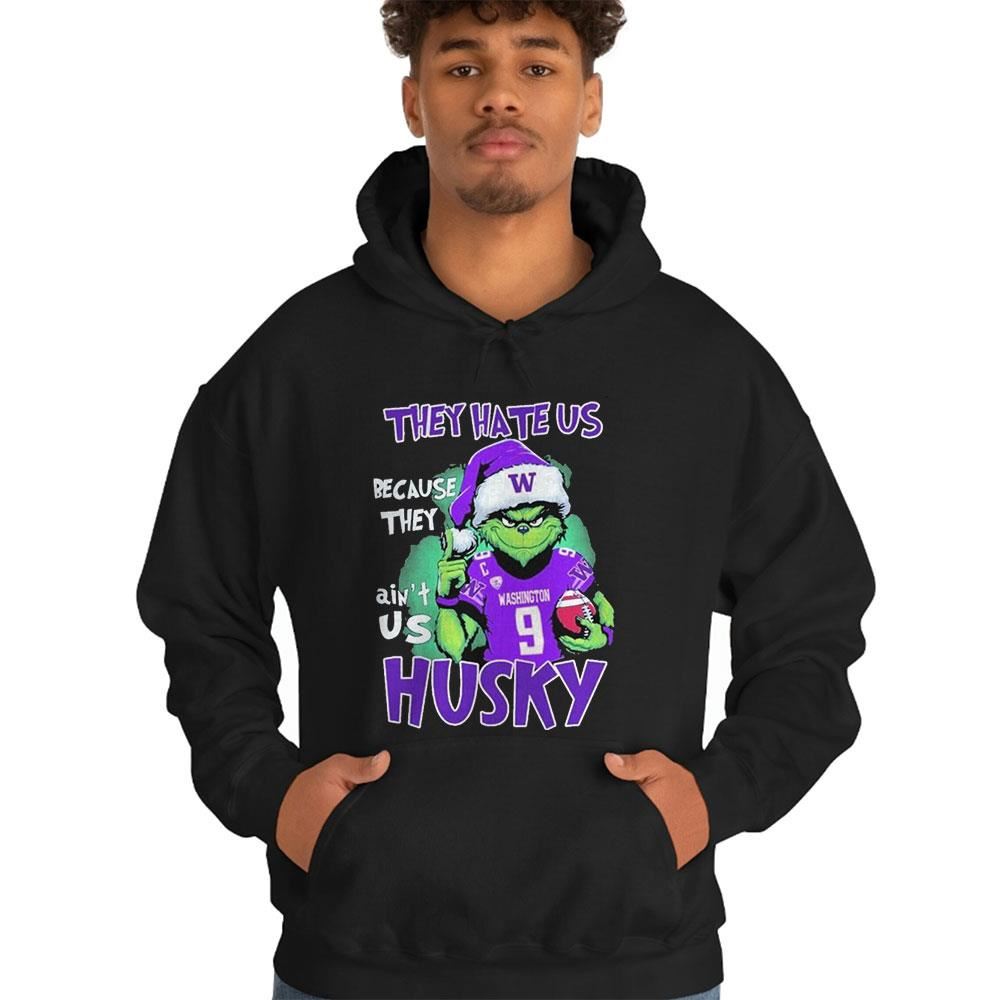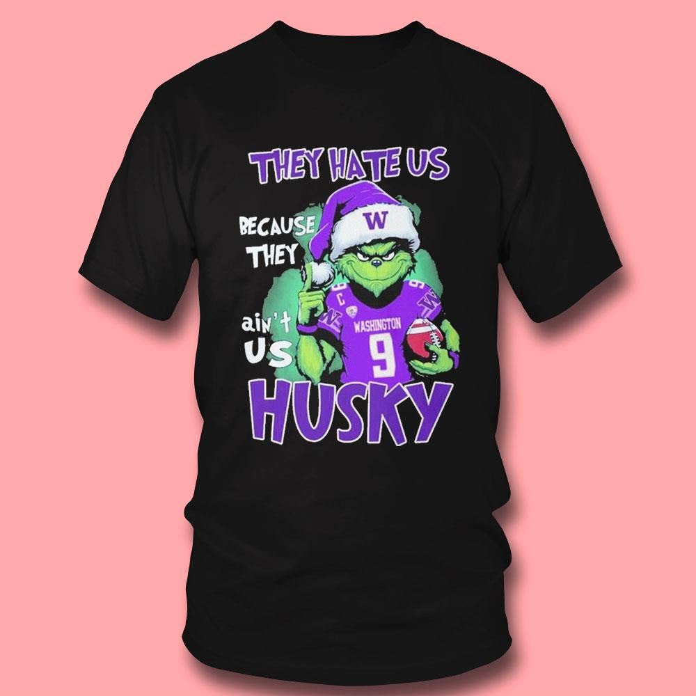 The Santa Grinch They Hate Us Because They Ain’t Us Washington Huskies Shirt combines the iconic Grinch character with the fierce pride of being a Huskies supporter. It’s a playful and bold statement that will make you stand out from the crowd at any game or holiday gathering.