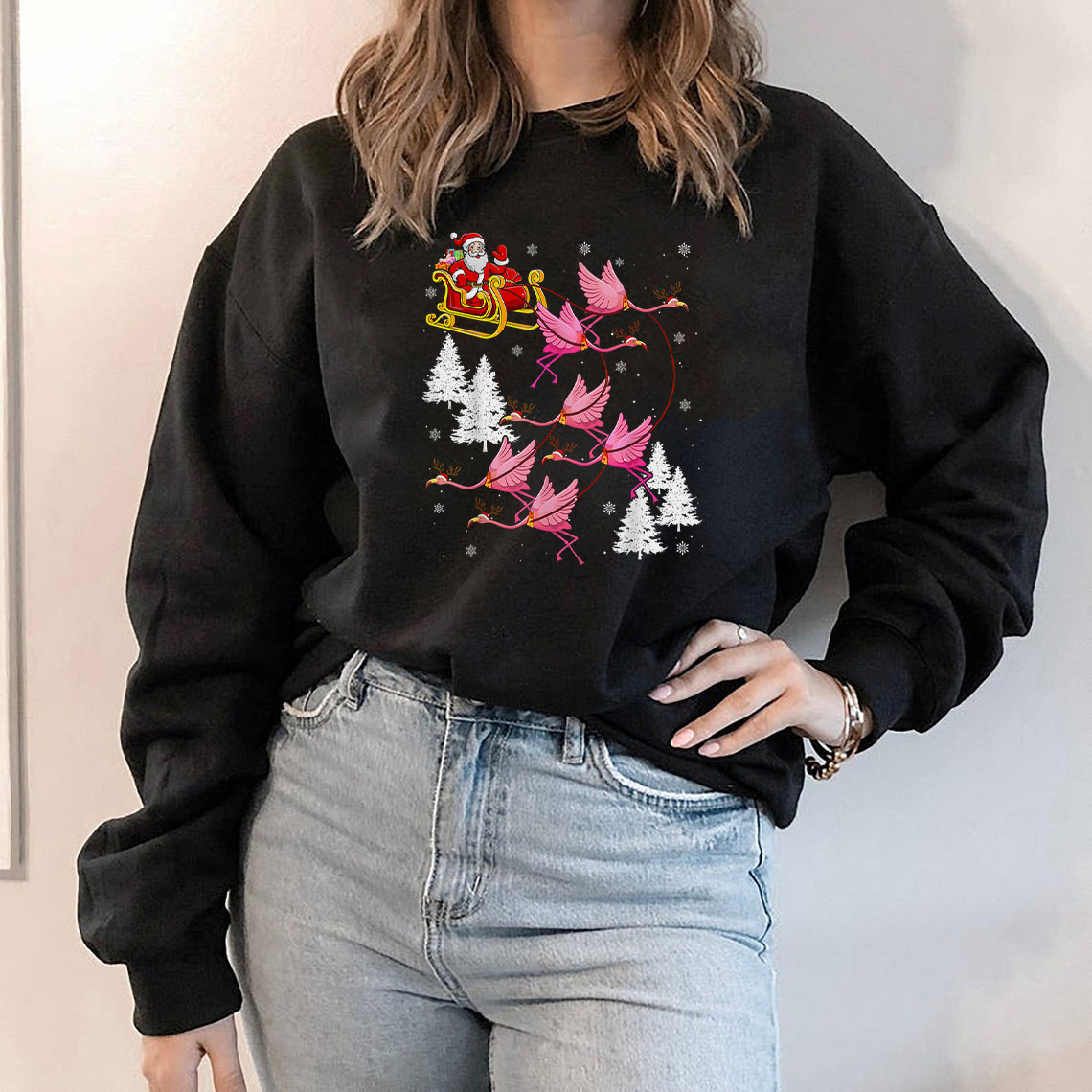 The Santa Riding Flamingo Christmas Sweatshirt is a stylish, comfy shirt. Made of 100% cotton, it is cool and soft and keeps you cool in summer days. This edgy shirt comes in different colors, but the black stands out the most and matches with everything. It has many uses like casual wear, party wear, office wear and much more.