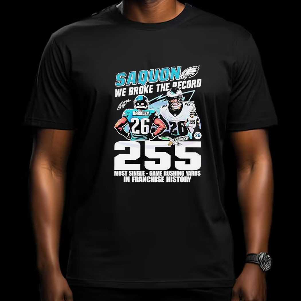 Saquon Barkley We Broke The Record 255 Most Single Game Rushing Yards Philadelphia Eagles Shirt