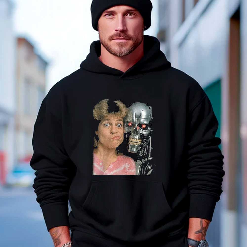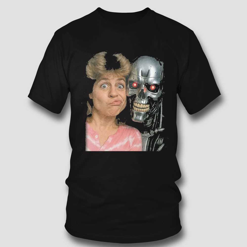 Get ready for some time-traveling laughs with our “Sarah Connor & T-800 Funny Face T-Shirt”! This wonderfully amusing design features the resilient Sarah Connor alongside a T-800 with an unexpectedly comical expression. It’s a brilliant subversion of the iconic Terminator saga, blending sci-fi seriousness with lighthearted humor that will surely catch eyes and spark smiles. The detailed artwork showcases both characters in a unique, memorable way. Printed on soft, premium cotton, this tee offers maximum comfort and durability for everyday wear. Perfect for Terminator fans who appreciate a good chuckle and a fresh take on classic movie imagery.