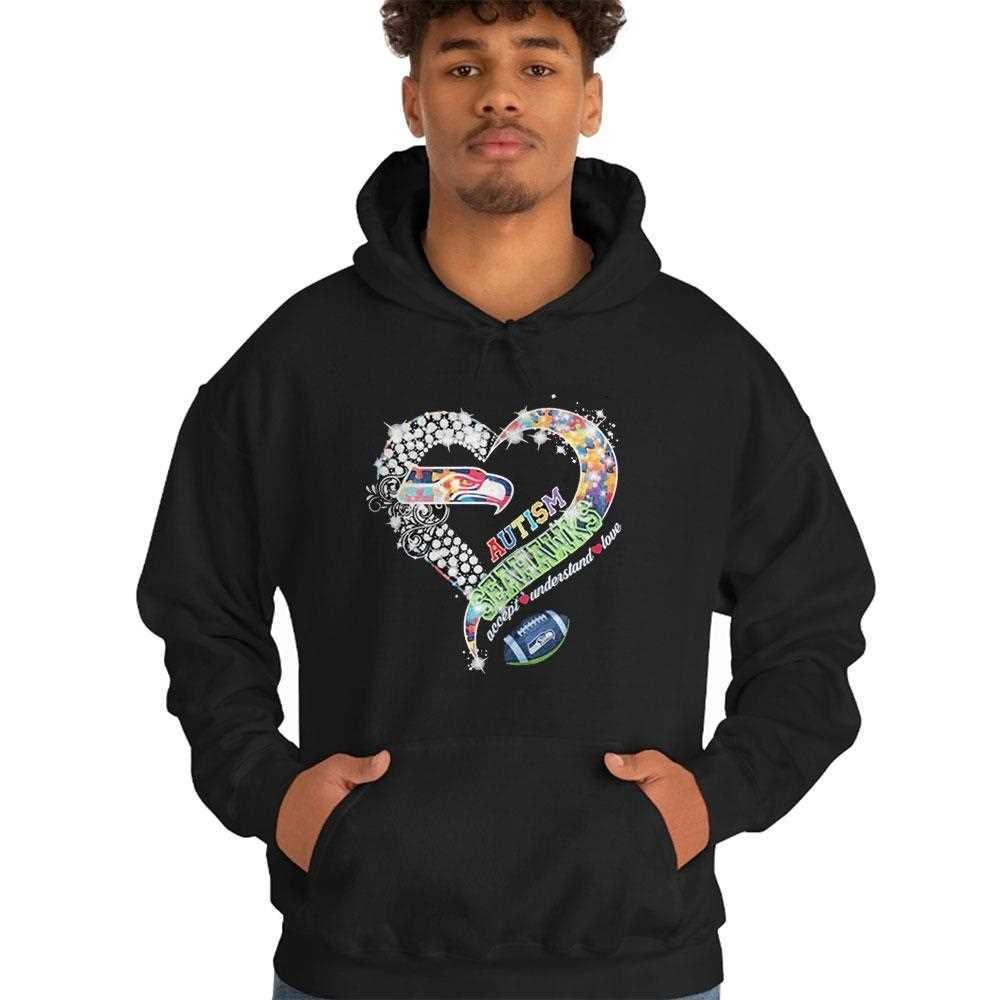 .The Seattle Seahawks Autism Accept Understand Love Awareness Diamond Heart Shirt is more than just a piece of apparel; it’s a powerful statement of support and solidarity. By wearing this shirt, you’re not only showcasing your love for the Seahawks but also championing a cause that touches the lives of many families affected by autism.