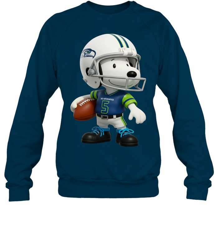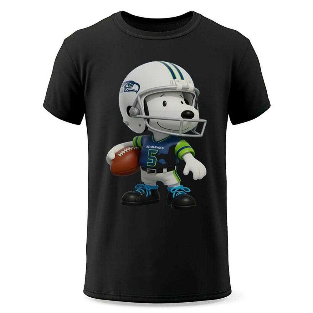 | Seattle Seahawks Snoopy Football Sweatshirt: The 12th Beagle! | Answer the call of the 12th Man with the dynamic Seattle Seahawks Snoopy Football Sweatshirt! This deep navy blue crewneck features Snoopy, ready to unleash the beast in a dark blue Seahawks helmet with the fierce hawk logo, and a jersey proudly displaying the number ‘1’. He’s holding a football, embodying the relentless energy of the Seahawks. The distinctive navy and vibrant green colors perfectly capture the spirit of Lumen Field and the passionate fan base. This incredibly comfortable sweatshirt is the ultimate way to show your dedication to the Seahawks, blending playful Peanuts charm with intense team pride. Ideal for rainy Seattle days or loud game-day cheers. Don’t miss out on representing the loudest fans! Get your Seattle Seahawks Snoopy Football Sweatshirt and be part of the roar! |. T-shirt !