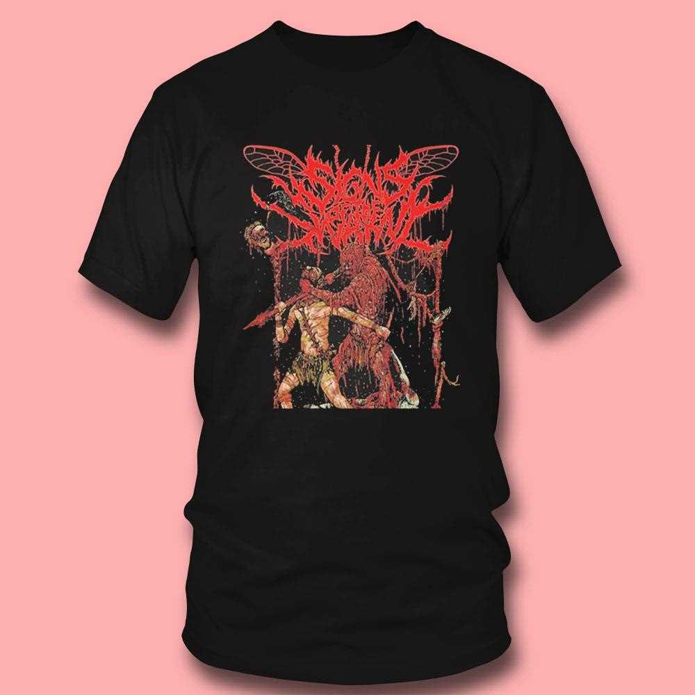 From the brutal, technical, and uncompromising world of deathcore comes a design that is as savage as the music itself. This t-shirt from the band Signs of the Swarm, for their “Natural Selection” era, features a terrifying and beautifully detailed illustration of a demonic, insectoid creature, a perfect visual representation of their complex and punishing sound. The artwork is a masterpiece of extreme metal art, with a dark, visceral, and powerful aesthetic that will appeal to any fan of the genre. This isn’t just a shirt; it’s a statement of allegiance to one of the most exciting and innovative bands in modern death metal.