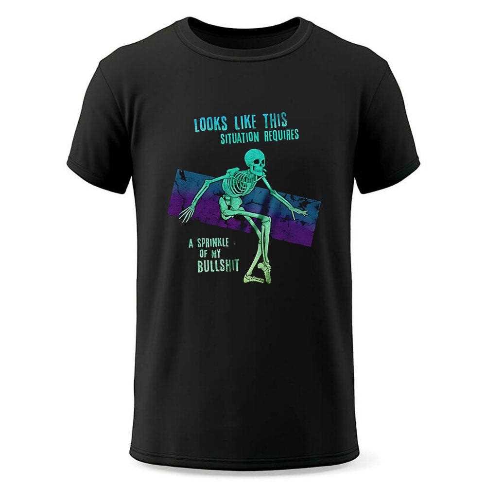 .When life throws unexpected challenges your way, sometimes all you need is a little humor to lighten the mood. Enter the “Skeleton Looks Like This Situation Requires A Sprinkle Of My Bullshit” shirt—a perfect blend of wit and style that captures the essence of navigating through life’s absurdities. This shirt isn’t just a piece of clothing; it’s a statement. It boldly expresses that while we may face difficult situations, there’s always room for laughter and a bit of sass.