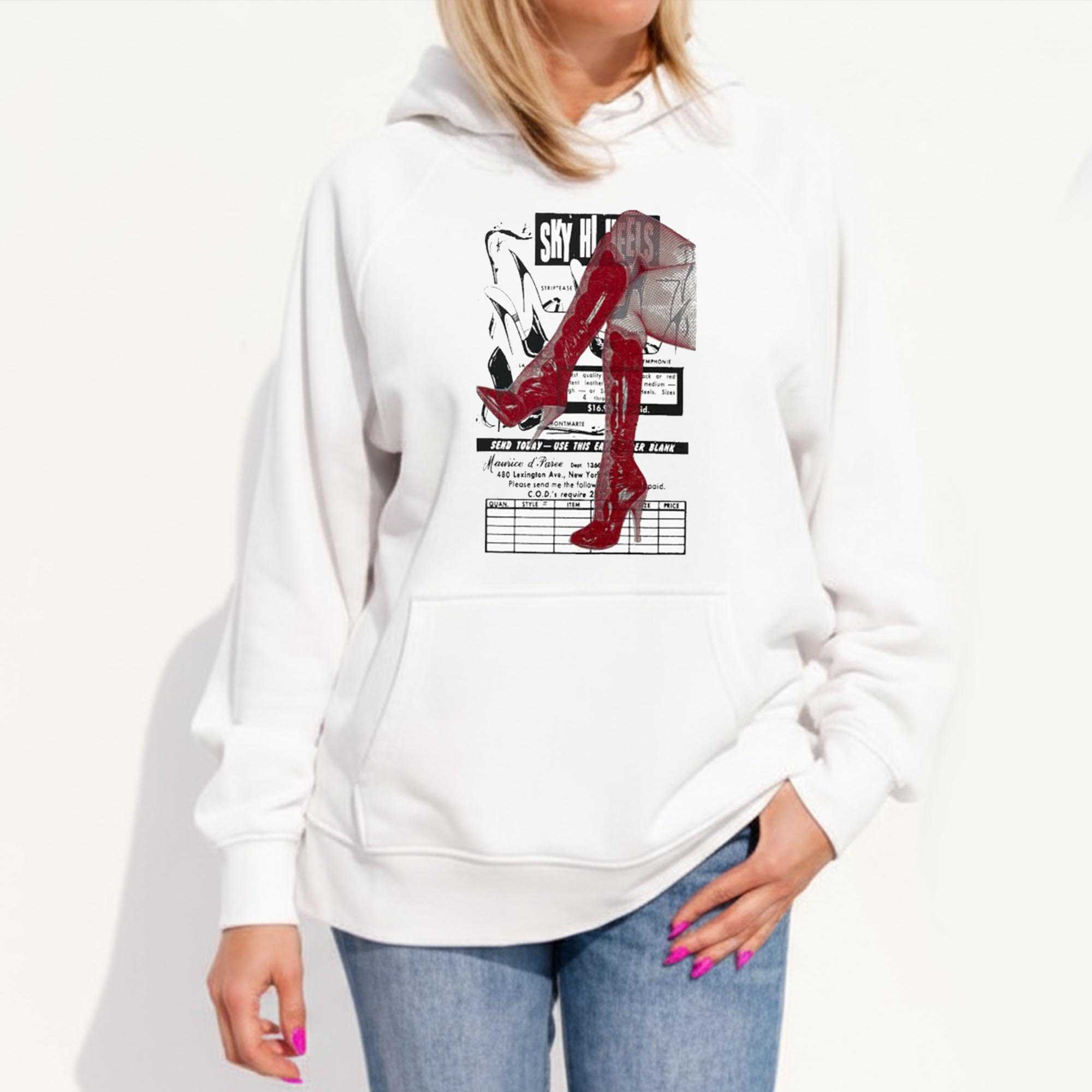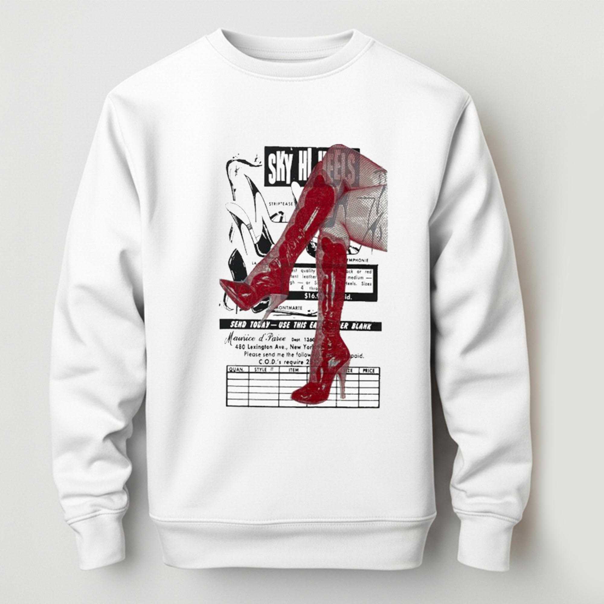 Celebrate the intersection of high-fashion allure and contemporary artistic design with the Sky Hi Heels Ii Feb 20 Tee. This design is a sophisticated tribute to the glamour of elite footwear, featuring a stunning, high-definition graphic of a high-heeled shoe that captures the light and the texture of luxury. The artwork utilizes a classic red and black palette on a clean white background, creating a visual that is as chic as a runway show in the heart of a metropolis.