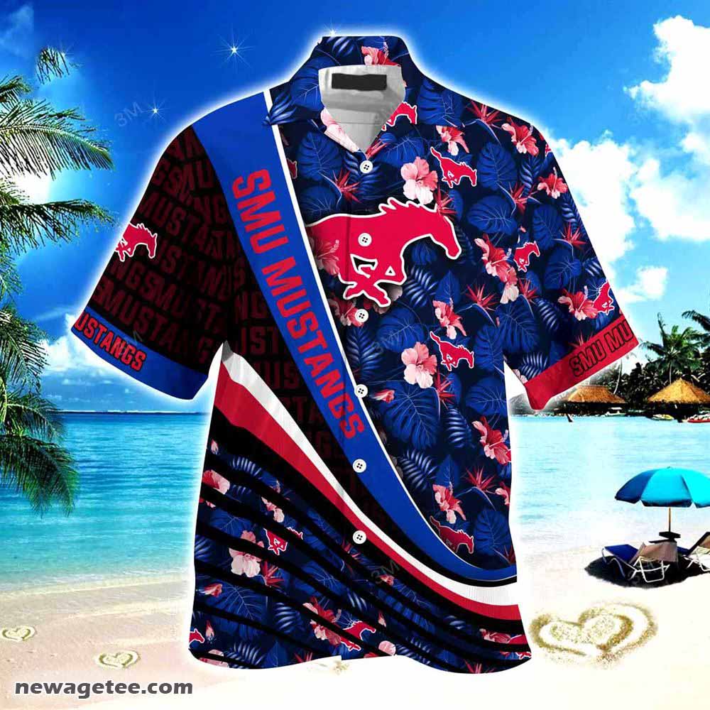Smu Mustangs Summer Beach Hawaiian Shirt With Tropical Flower Pattern