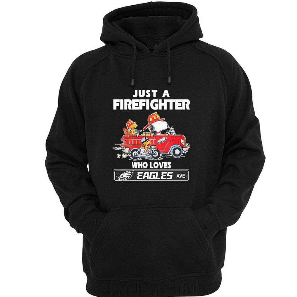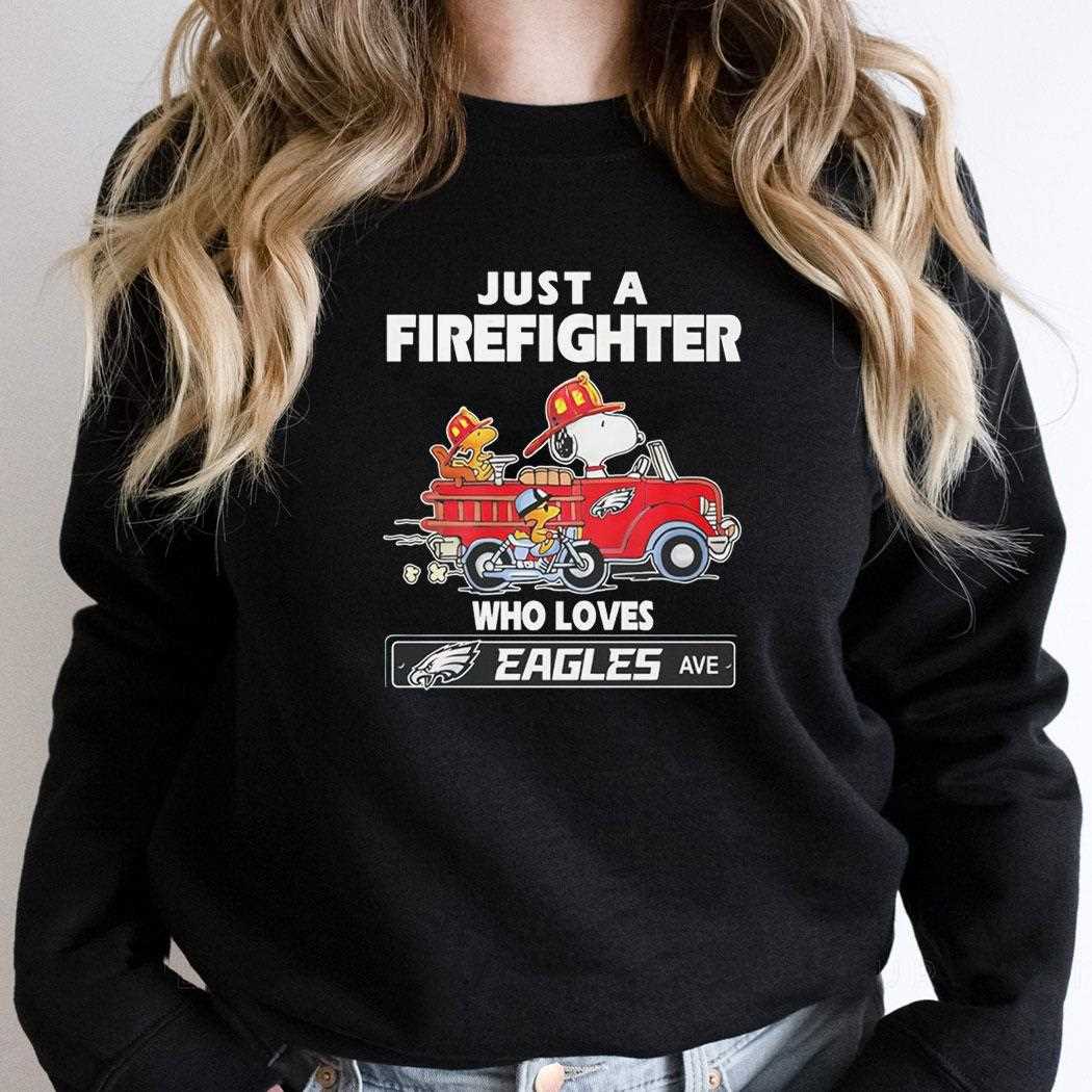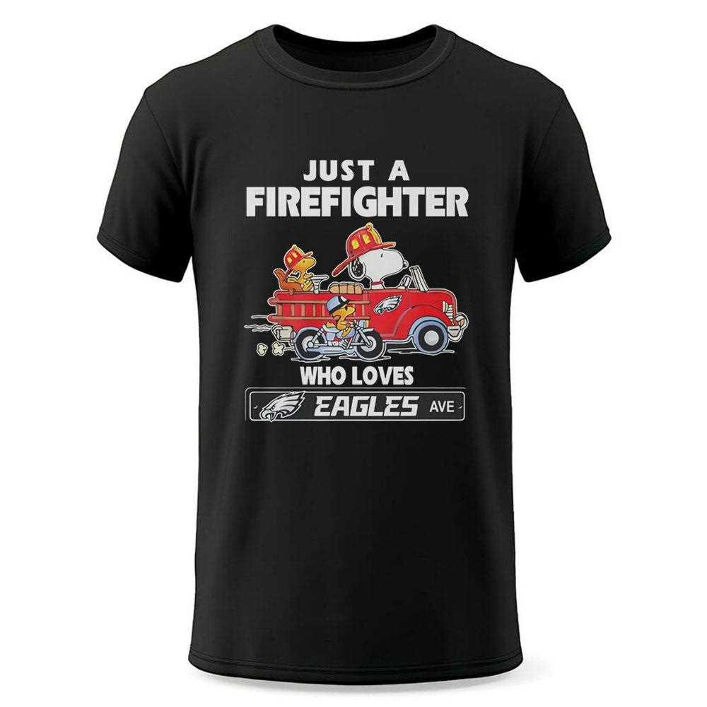 Snoopy And Woodstock Driving Car Motor Just A Fire Fighter Who Loves Nfl Philadelphia Eagles Shirt