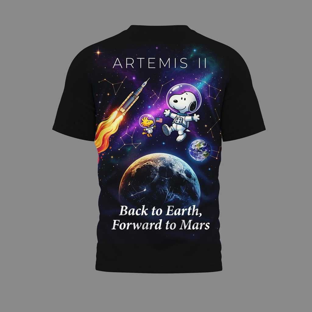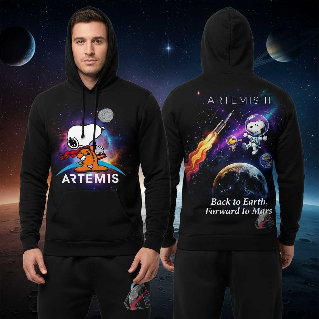 Premium quality Snoopy Artemis II 2026 Back To The Earth Forward to Mars Shirt Hoodie design. 100% cotton, machine washable.