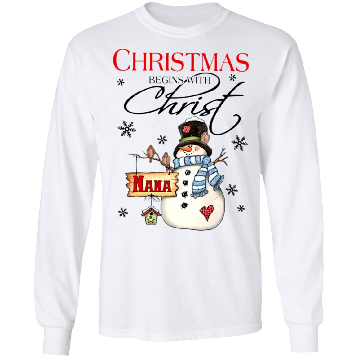 Snowman Nana Christmas Begins With Christ Christmas Sweatshirt