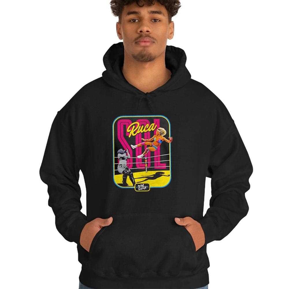 Get ready to feel the Solana Sun! This vibrant, retro-style t-shirt is a tribute to the high-flying WWE superstar, Sol Ruca. The colorful, 80s-inspired design, featuring her signature kick, is a perfect match for her energetic and innovative style in the ring. The sun is rising on a new star. Show your support for one of the most exciting young talents in WWE. Get yours now and catch the wave!.