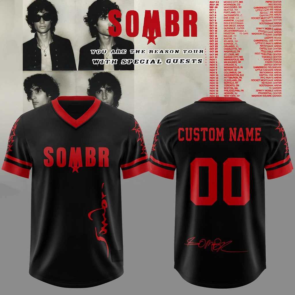 Stand out with a personal touch in the SOMBR You Are The Reason Tour Custom Name Football Jersey. This jersey takes the aggressive “SOMBR” aesthetic and applies it to a bold black and red colorway. The dark base provides the perfect canvas for the vibrant red accents and the striking tour graphics featured on the front and back.