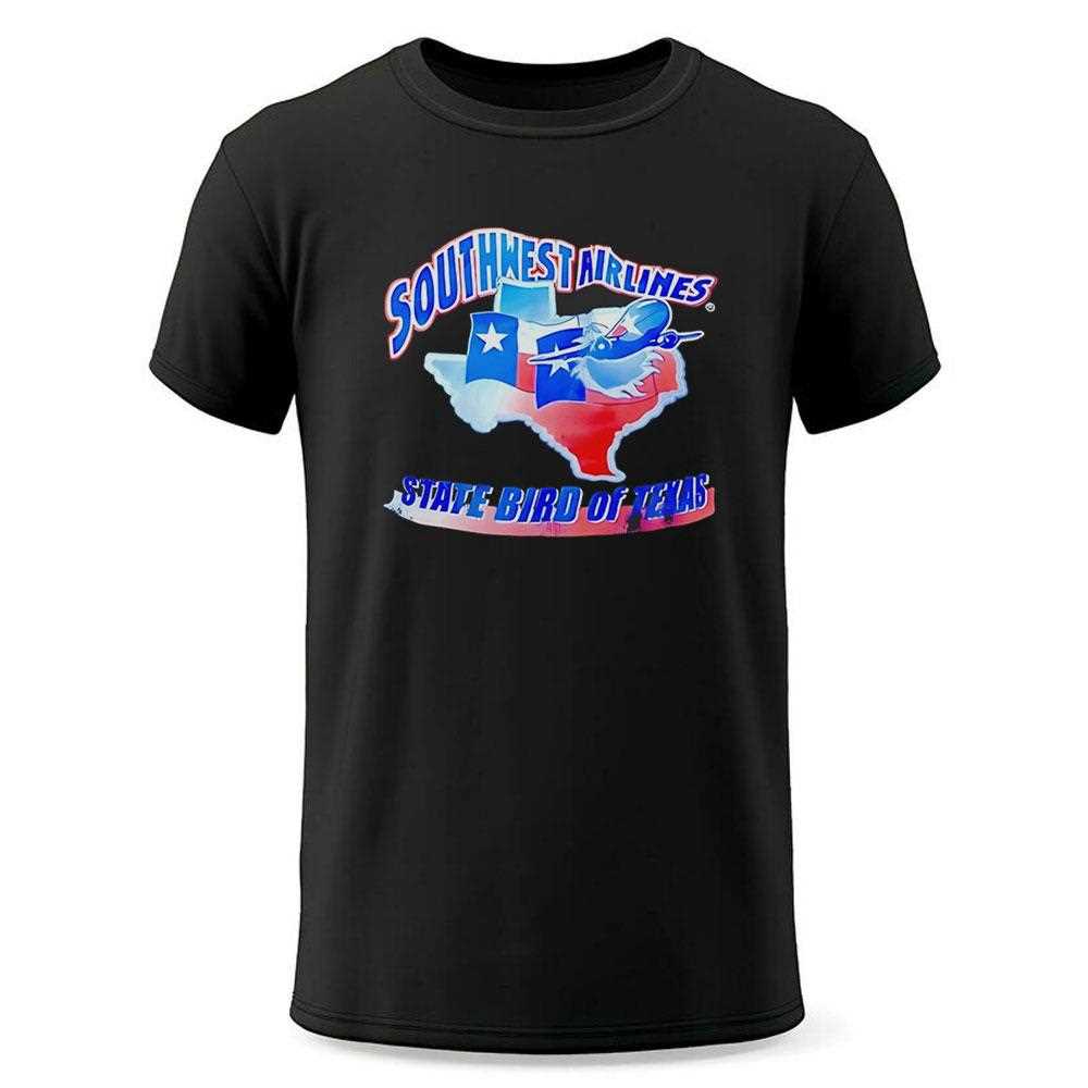 This retro-styled design merges the classic airline logo with the silhouette of Texas and the “State Bird” tagline. It’s a clever, nostalgic piece for those who love the Lone Star State and vintage travel. Fly high and show your Texas pride with the Southwest Airlines State Bird Of Texas Tee.. T-shirt !