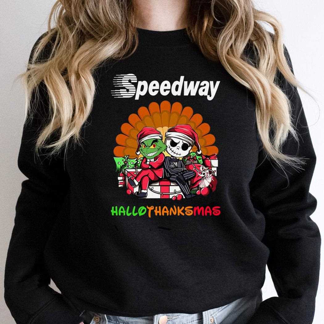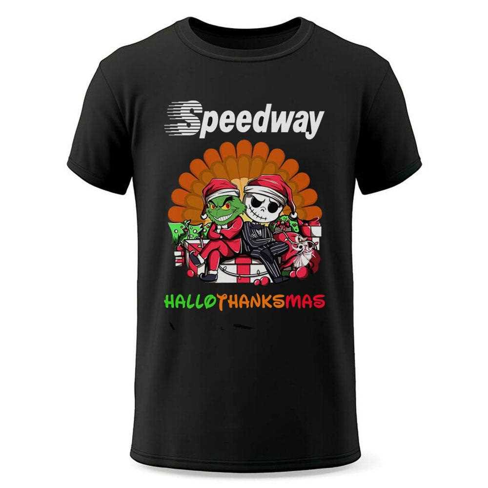 Don’t pump the brakes! Grab your Speedway Grinch and Jack Skellington HalloThanksMas Tee and race into the holidays!. T-shirt !
