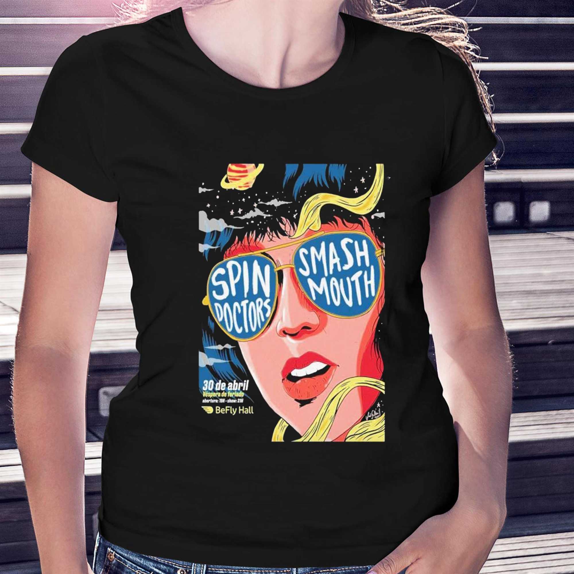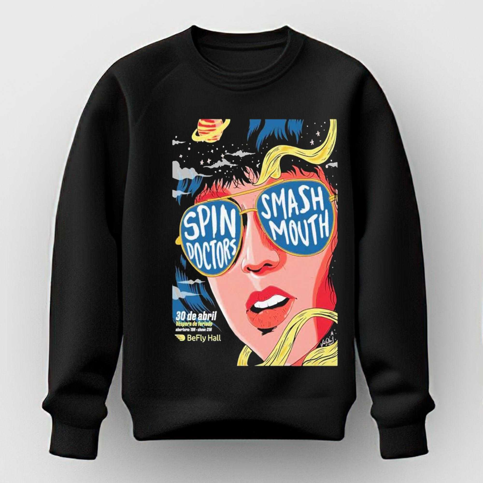 Take a nostalgic trip back to the peak of 90s alternative rock with a design that celebrates a dream tour across the globe. The Spin Doctors With Smash Mouth Apr 30 2026 Befly Hall In Belo Horizonte Brazil Poster… tee is the ultimate piece of memorabilia for fans of infectious hooks and rhythmic grooves. The design features a stunning, psychedelic “tour poster” style graphic, blending the iconic aesthetics of the Spin Doctors and Smash Mouth into one vibrant visual feast. Centered on a colorful close-up portrait, the artwork uses a palette of bright pinks, yellows, and teals that pop vividly against the black fabric. It captures the high-energy, fun-loving spirit of the era, marking a future performance at the legendary Befly Hall in Brazil. This shirt is crafted from ultra-soft ringspun cotton, providing a luxurious feel and a breathable fit that is perfect for concert nights or summer festivals. The high-resolution print ensures every detail of the tour dates and the artistic motifs remain sharp and clear through every wash. It pays tribute to the talent and the enduring appeal of two bands that helped define the soundtrack of a generation. Whether you’re a “Two Princes” devotee or a fan of the “All Star” anthem, this tee is an essential addition to your collection. Represent the global reach of rock and roll with a look that is truly out of this world. Secure your tour gear before it’s gone. Buy the Spin Doctors With Smash Mouth Apr 30 2026 Befly Hall In Belo Horizonte Brazil Poster… today!.