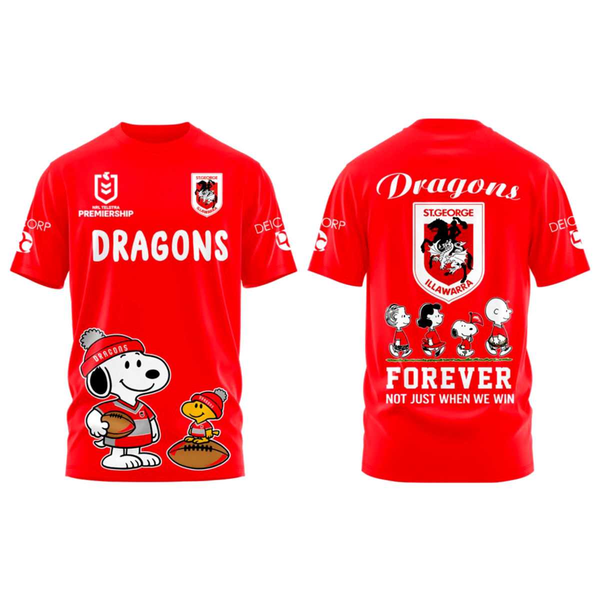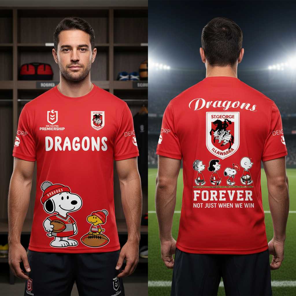 Show your St. George Illawarra pride with a design that is sure to stand out in the grandstands. It’s a perfect gift for the Dragon in your life or a treat for yourself. Secure your St. George Illawarra Dragons Peanuts 2026 Hoodie today and join the Red V in style!