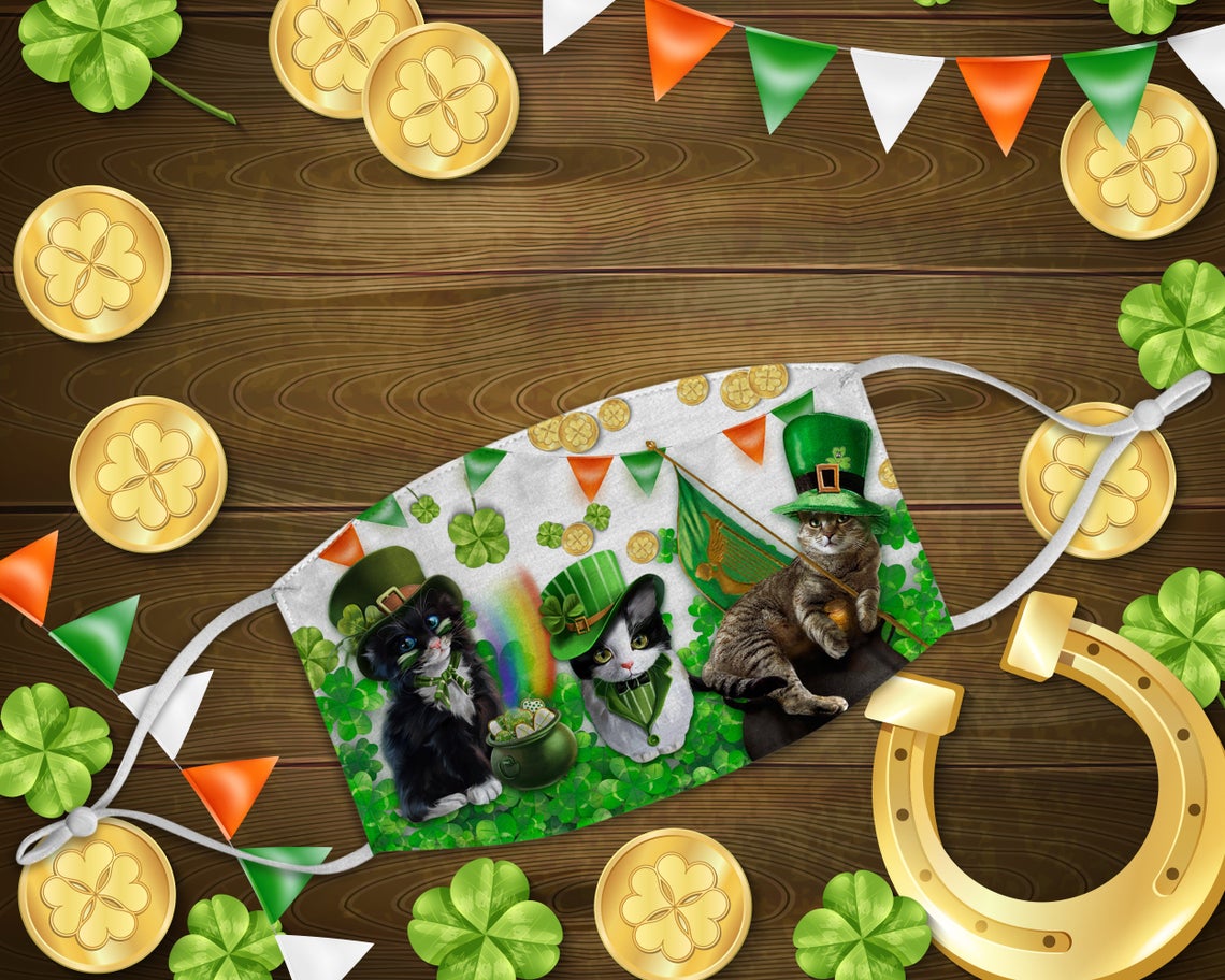St Patrick’s Day Lucky Irish Cats Face Mask