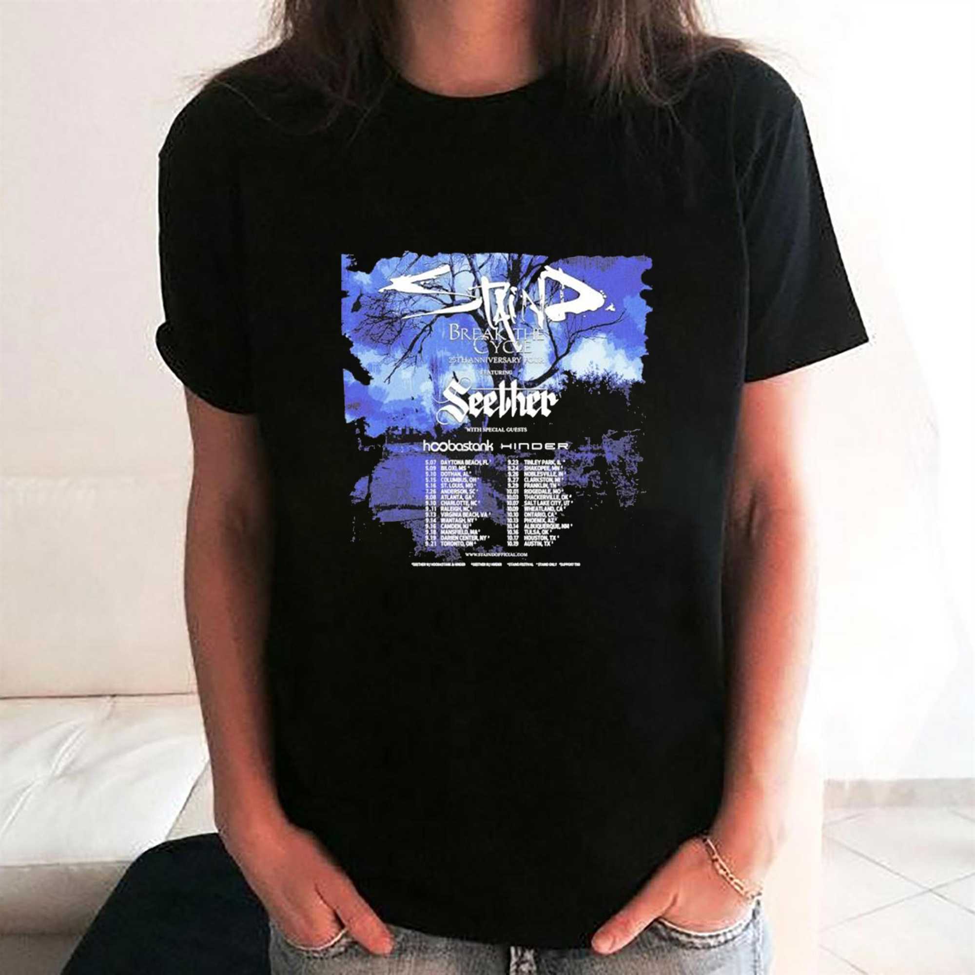 If you’re searching for a Staind Celebrating 25 Years Of Break The Cycle Tour Poster Tee that can offer both a soft feel and breathability to keep you comfortable on sweltering summer days, look no further. Don’t wait any longer, add it to your cart and experience the benefits of our 100% cotton T-shirt !