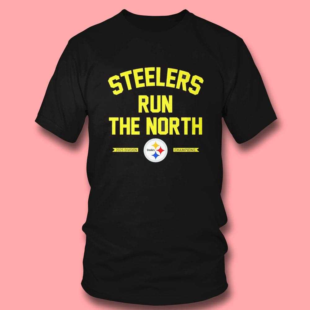 Declare the Steel City’s dominance over the division with this aggressive “Run The North” t-shirt. Featuring the iconic Pittsburgh Steelers logo and bold, varsity-style typography, this design marks the 2025 season as a year of total control. The gold and white graphics pop against the deep black fabric, creating a look that is both tough and professional. It’s the ultimate rally cry for the Terrible Towel-waving faithful who live for AFC North rivalries. The shirt is constructed from a premium, mid-weight cotton that provides a comfortable, relaxed fit for all-season wear. Whether you’re tailgating at Acrisure Stadium or watching from home, this tee makes it clear where your allegiance lies. The durable print is designed to withstand the intensity of every game-day celebration. Represent the grit of Pittsburgh in style. Show everyone who truly owns the North—purchase your Steelers Run The North 2025 Tee right now!. T-shirt !