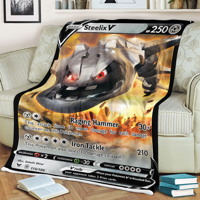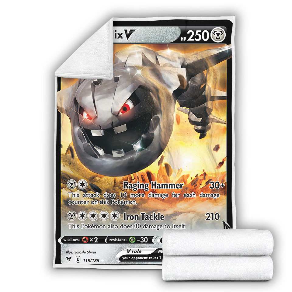 Steelix V 115-185 Vivid Voltage Holo Ultra Rare Pokemon Card Fleece Blanket