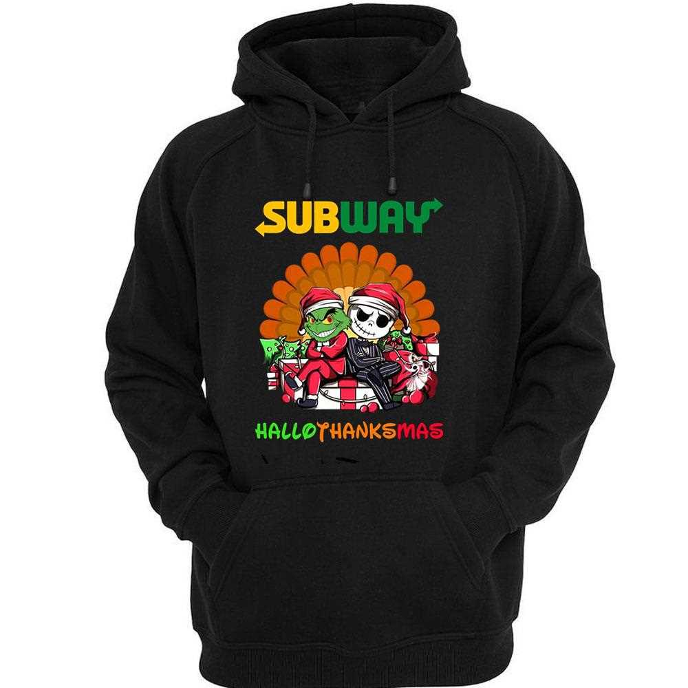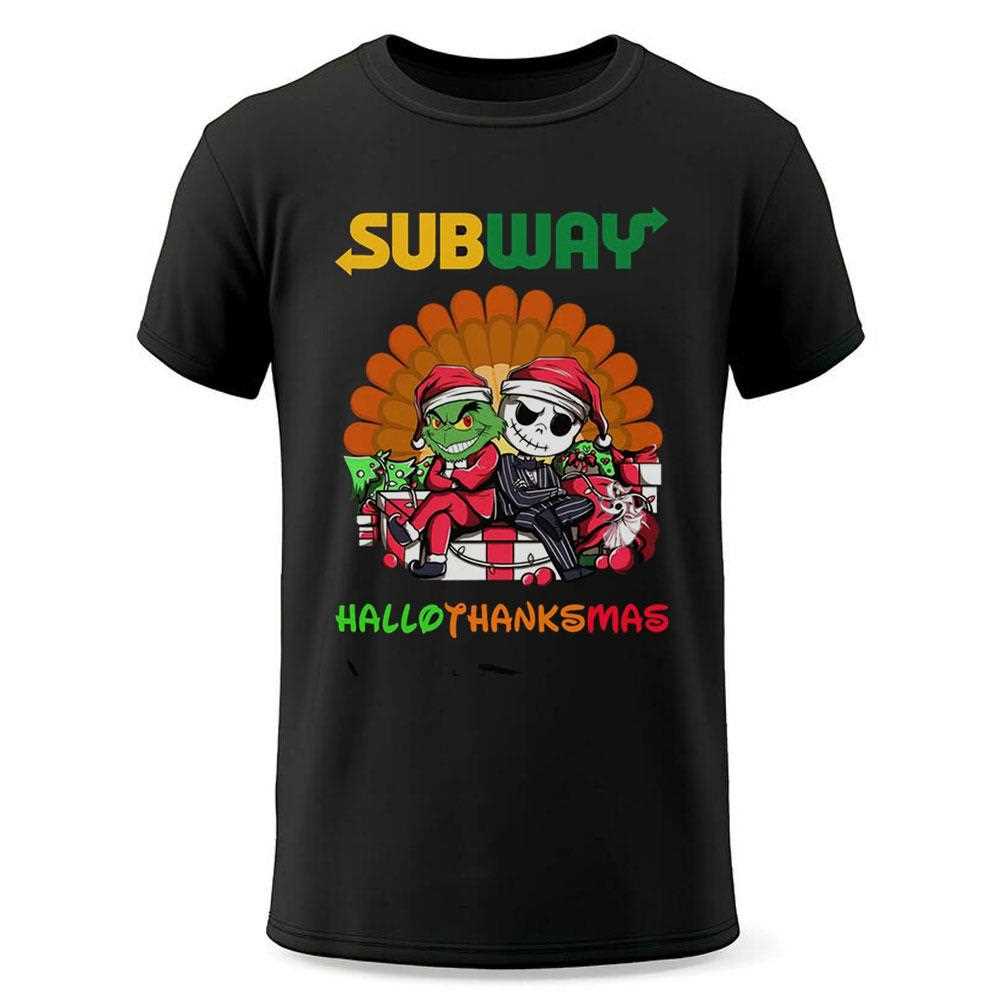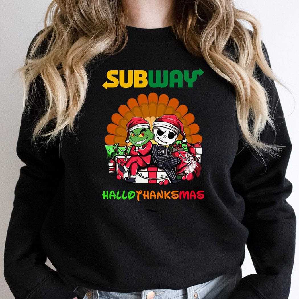 Subway Grinch And Jack Skellington Hallothanksmas Tee