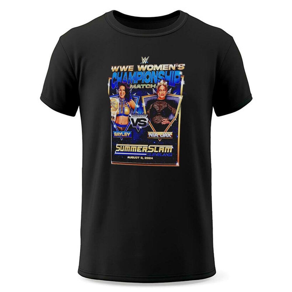 Whether you’re a diehard fan of Bayley, Nia Jax, or simply can’t wait to witness this clash of the titans, this shirt is a must-have collectible. Wear it with pride as you cheer on your favorite, and get ready for an unforgettable Summerslam 2024 experience.