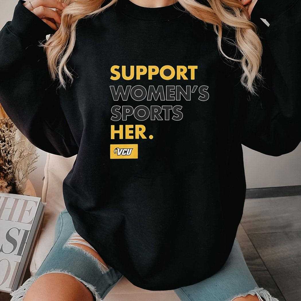 Make an empowering statement for equality and athletic excellence with this “Support Womens Sports” VCU Rams tribute. The design features a bold and professional layout that highlights the importance of the movement, integrated with the iconic Rams logo in signature black and gold. This shirt is designed for students, alumni, and fans who are passionate about promoting and celebrating female student-athletes. The high-contrast typography and clean lines create a look that is both stylish and authoritative. Printed on a soft-touch, high-grade cotton-poly blend, it provides exceptional comfort and a modern, tailored fit. A portion of the proceeds from this shirt goes toward supporting collegiate athletic programs. It represents a commitment to a fairer and more inclusive world of sport. Wear your values on your chest and show the world that you believe in the power and talent of women in the arena. Stand for greatness and support the Rams—order your Support Womens Sports Her Vcu Rams Tee today!. T-shirt !