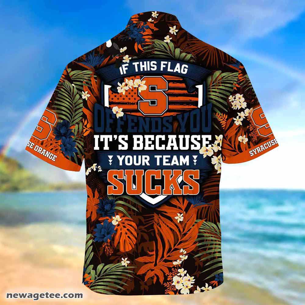 - Our Syracuse Orange Summer Beach Hawaiian Shirt This Flag Offends You is made of kate silk-polyester fabric, the Short Sleeve Hawaiian Beach Shirt boasts remarkable durability, insulation, and wrinkle resistance. Elevate your summer wardrobe with this versatile shirt that’s ideal for laid-back excursions, romantic rendezvous, and sun-soaked beach gatherings. Its adaptable style renders it suitable for a range of occasions, making it an exceptional pick for festive events such as Christmas, birthdays, parties, and housewarming presents.