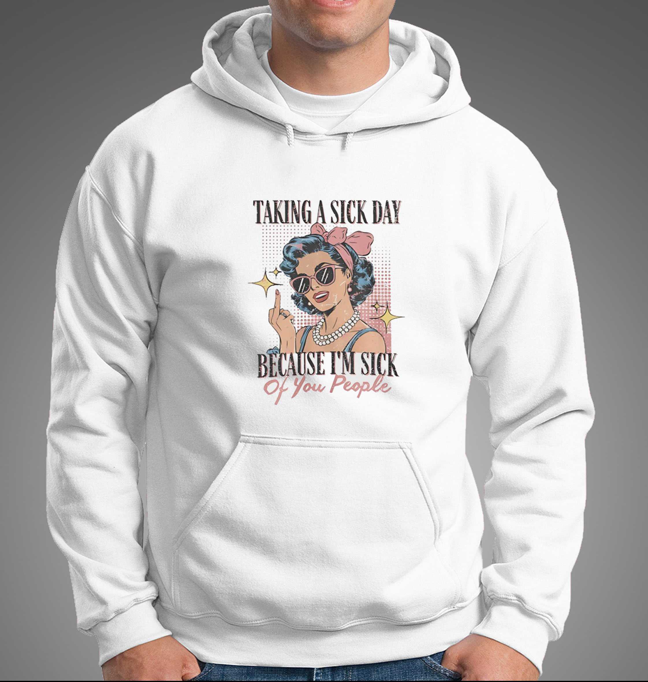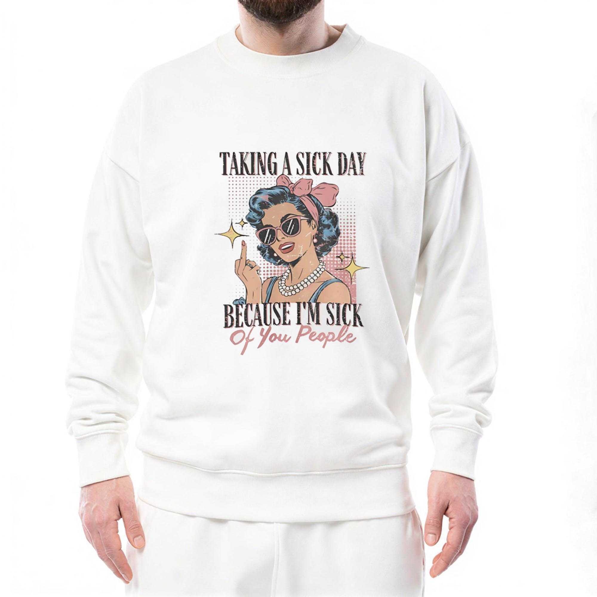 Inject some sharp, self-aware humor into your daily routine with the hilariously relatable Taking A Sick Day Because Im Sick Tee. This design is a masterclass in minimalist visual comedy, featuring a bold typographic layout that delivers a punchline every modern employee can relate to. The text, “TAKING A SICK DAY BECAUSE I’M SICK… OF ALL YOU PEOPLE,” is rendered in a clean, authoritative font that ensures the message is heard loud and clear. It captures the spirit of “office irony” and the essential need for a boundaries-first mindset in a fast-paced world. Set against a deep black background, the vibrant red and white accents pop with professional intensity.