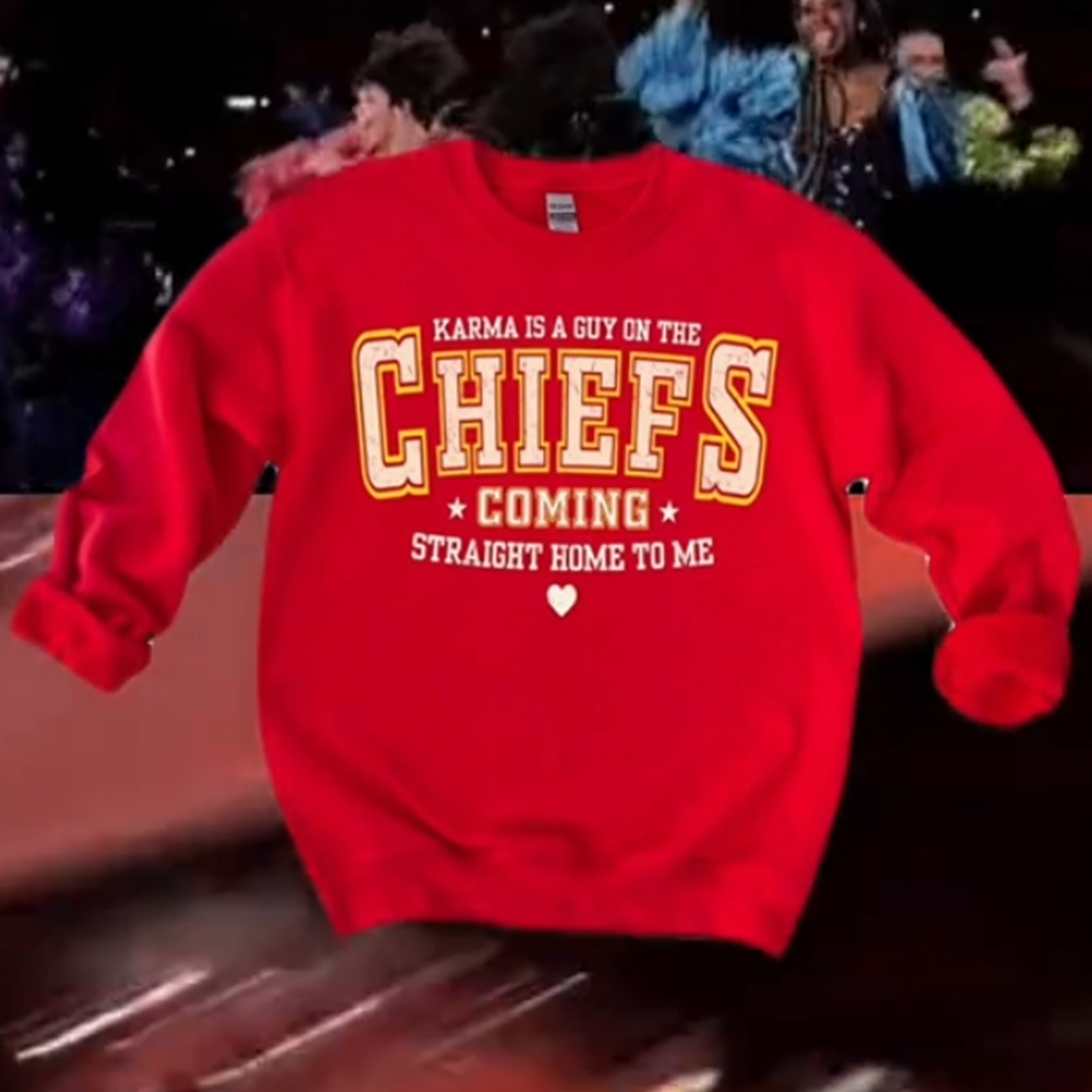 If you’re searching for a Taylor Swift Karma Is The Guy On The Chiefs Coming Straight Home To Me Shirt that can offer both a soft feel and breathability to keep you comfortable on sweltering summer days, look no further. Don’t wait any longer, add it to your cart and experience the benefits of our 100% cotton T-shirt !