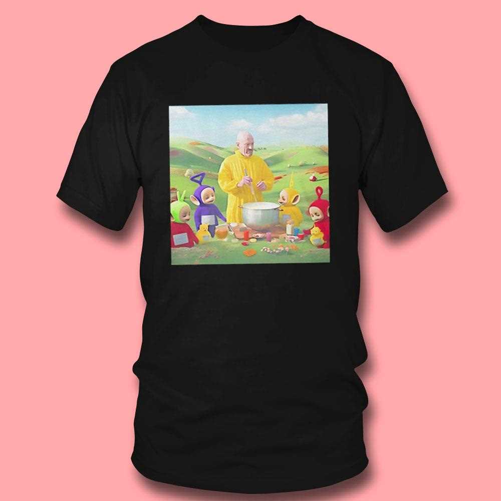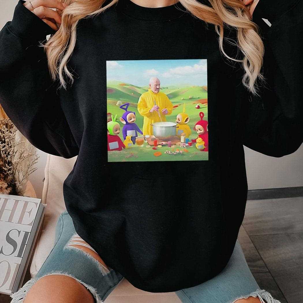 Eh-oh! It’s time to cook. This legendary t-shirt is the ultimate, bizarre mashup, reimagining the beloved children’s show Teletubbies as the cast of the gritty crime drama Breaking Bad. It’s a masterpiece of surreal, internet-fueled humor. Say my name… Tinky Winky. This is a must-have for anyone who appreciates a truly unhinged and brilliant piece of pop culture parody. Get yours now..