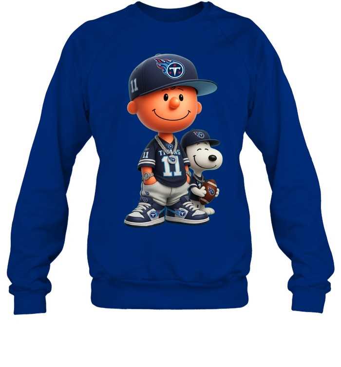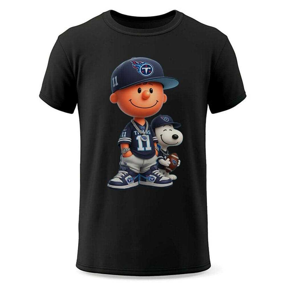 Forge ahead with team spirit and timeless charm in our “Tennessee Titans Charlie Brown and Snoopy Shirt.” This sleek blue shirt showcases Charlie Brown, football in hand, alongside his loyal companion Snoopy, both infused with unmistakable Titans flair. The classic Peanuts artwork is subtly integrated with the powerful spirit of the Tennessee Titans, creating a design that’s both endearing and proud. Made from high-quality, comfortable material, this shirt is ideal for cheering on the Titans from the stands or from your living room. It’s a playful yet proud way to show your dedication to the team while celebrating two beloved cultural icons. Titan Up! Show your Titans pride with a touch of classic cartoon magic. Add the Tennessee Titans Charlie Brown and Snoopy Shirt to your cart and get ready to soar!. T-shirt !