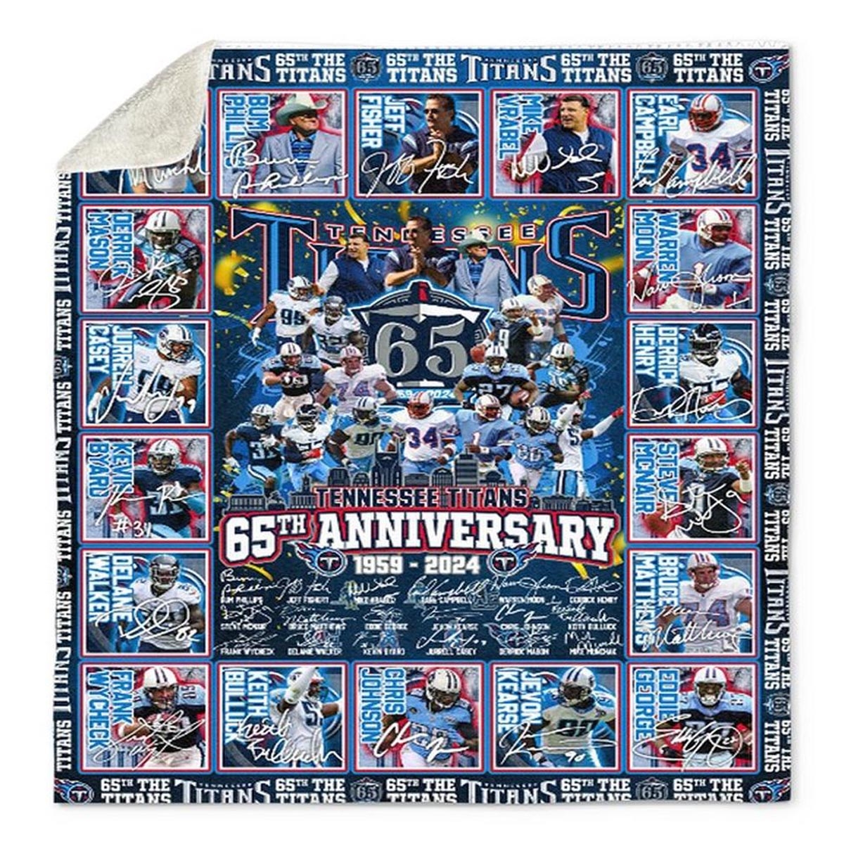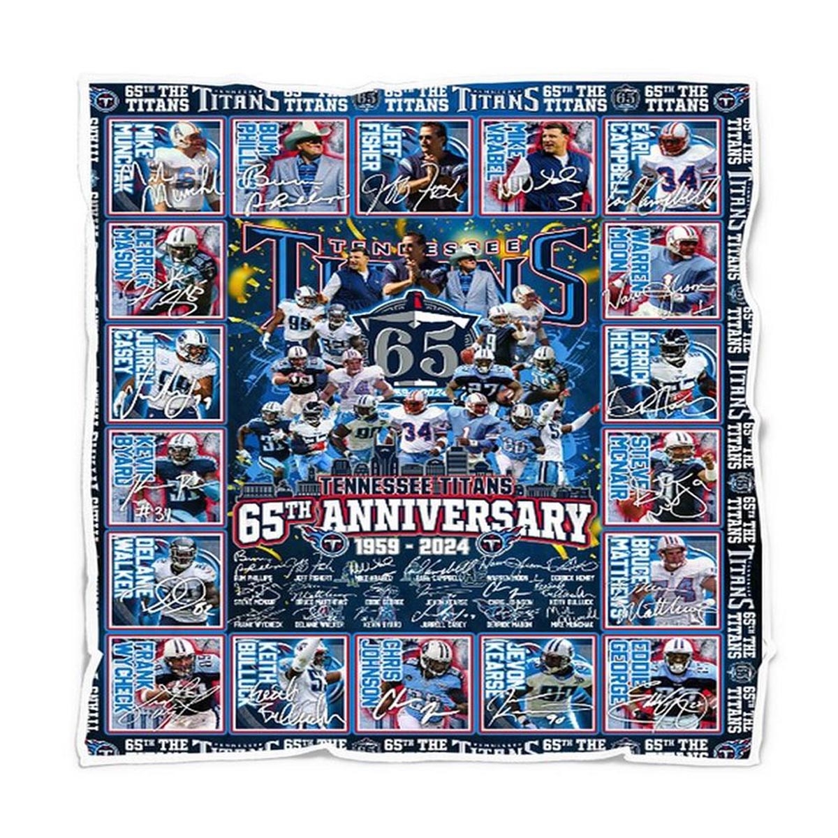 Tennessee Titans Legends 65th Anniversary 1959-2024 Quilt Fleece Blanket