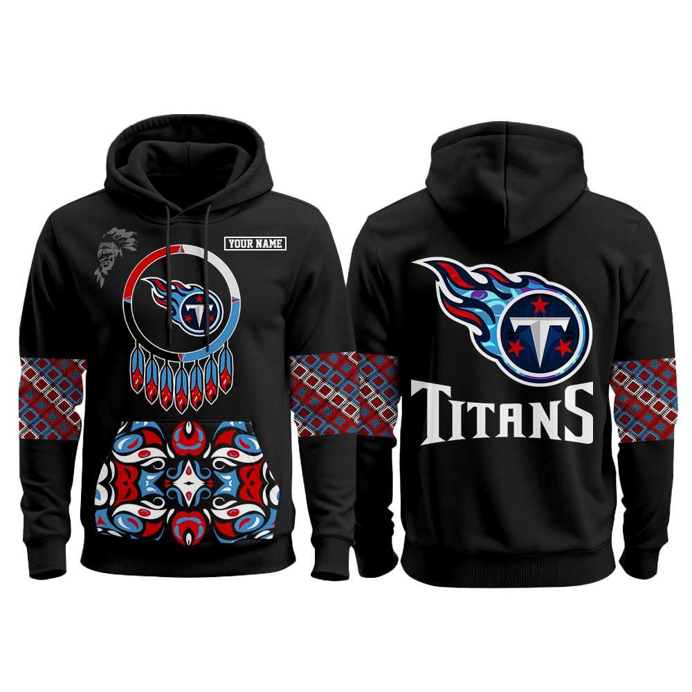 > Clash with pride and honor a mighty heritage with our Tennessee Titans Native American Heritage Month Hoodie. This striking design powerfully blends the iconic two-tone blue and red of the Titans with intricate, respectfully inspired Native American artwork. Envision the flaming thumbtack logo, perhaps subtly integrated with patterns that reflect strength, resilience, and a deep connection to the land – stylized thunderbirds, bears, or geometric designs that echo traditional artistry. The patterns often incorporate a sense of dynamic energy and profound connection to ancestral wisdom, creating a hoodie that is both visually captivating and deeply meaningful. This is more than just fan gear; it’s a celebration of enduring spirit and cultural depth. Crafted for comfort and built to last, it’s ideal for showing your team allegiance on brisk autumn days or any time you want to make a statement of pride. Titan Up with a unique blend of power and heritage! Make a bold statement. Order your Tennessee Titans Native American Heritage Month Hoodie today!. Our Tennessee Titans Native American Heritage Month Hoodie meets all of your needs: it’s warm and cozy, lightweight and roomy, and built to last. It features dropped shoulders and a standard fit to offer a high level of comfort and ease of movement.