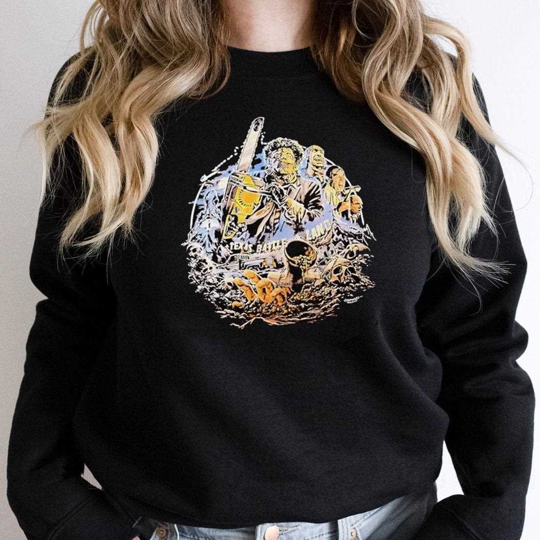 Don’t miss out on owning this unique item that blends style with fandom. Equip yourself with the Texas Battle Land Zombie Shirt and show off your allegiance to the ultimate survival saga!.