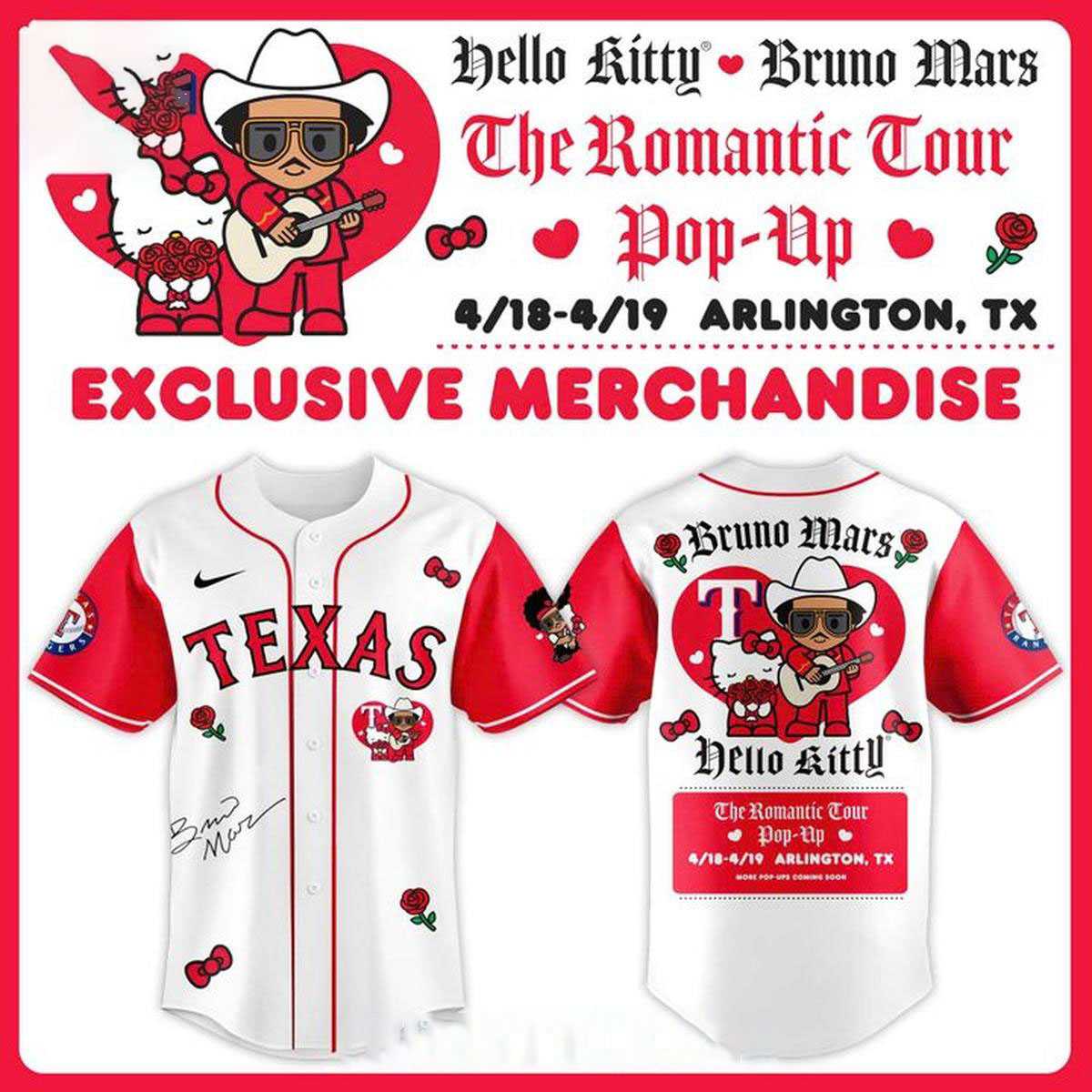 Product Details – Texas Rangers Hello Kitty Bruno Mars Romantic Tour 2026 Pop-Up Jersey