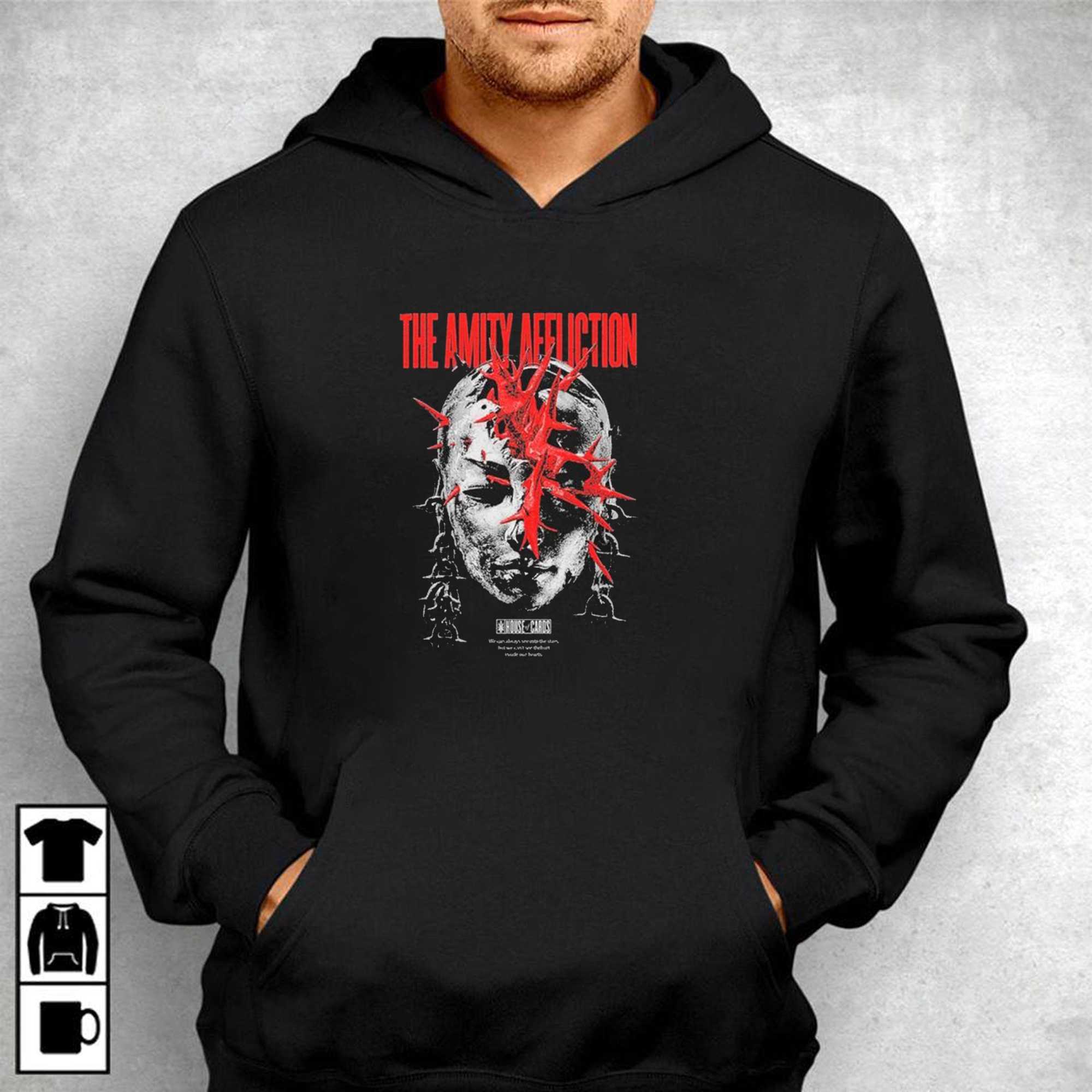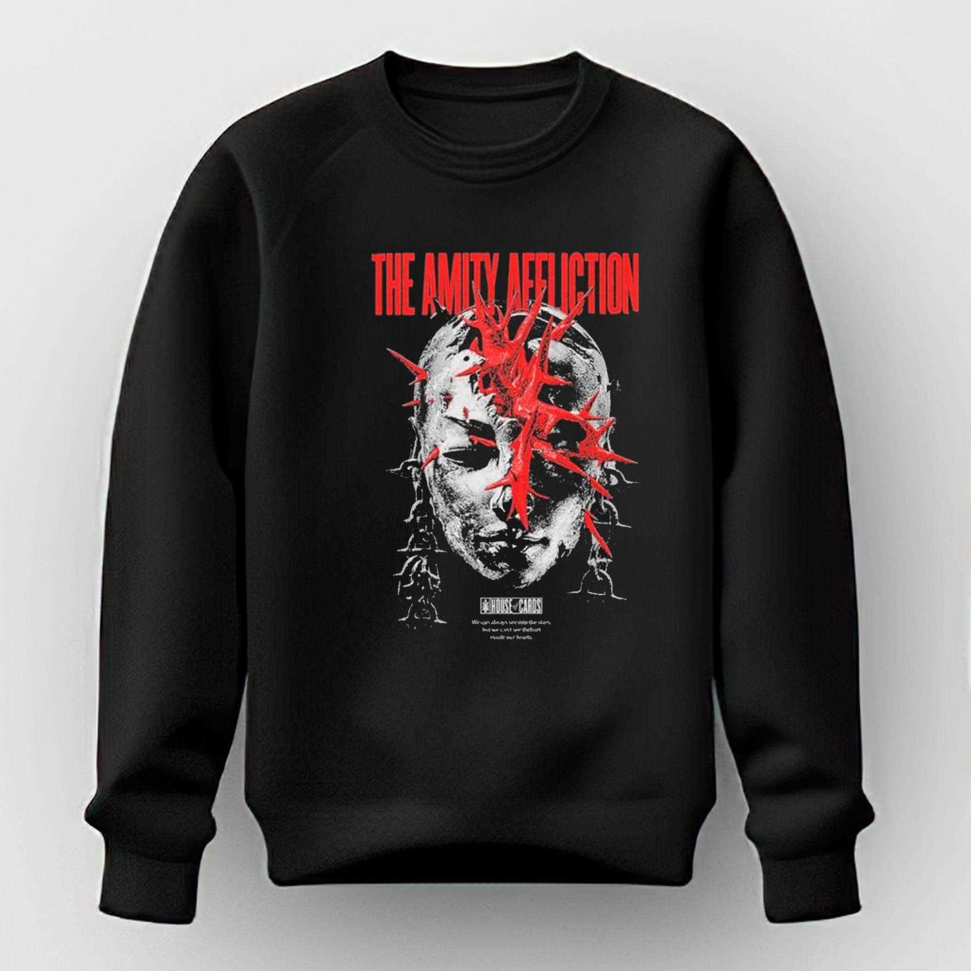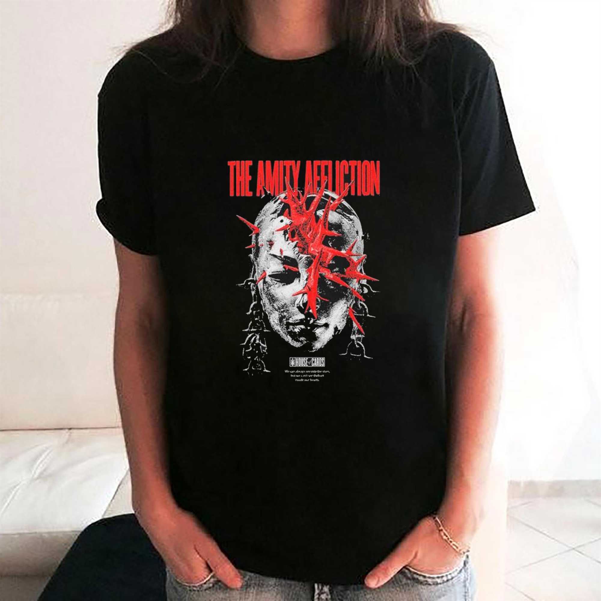 Embrace the atmospheric and emotional depth of the post-hardcore scene with The Amity Affliction Merch Head Cover T-Shirt. This design is a visual masterpiece for the “Amity” faithful, featuring a haunting and intricate graphic inspired by the band’s signature lyrical themes of struggle and resilience. The artwork centers on a stylized, blood-red skull motif entwined with symbolic imagery that reflects the raw intensity of their live performances. The bold, classic band typography is placed with authoritative precision, making it an unmistakable badge of loyalty for fans of the Australian icons. Set on a deep black canvas, the vibrant red and white tones of the print stand out with a professional, “arena-ready” look. The shirt is crafted from heavyweight, premium 100% cotton, providing a structured fit and long-lasting durability through every mosh pit and concert encore. The fabric is soft-washed for a comfortable, “broken-in” feel right out of the box. It’s more than just a band tee; it’s a piece of artistic expression that connects you to a global community of music lovers. Whether you’re heading to a summer festival or just navigating the urban landscape, this shirt ensures you look the part of a true enthusiast. Show your appreciation for the talent and the vision that has defined a genre for over a decade. Don’t let your style be ordinary—make it meaningful and loud. Secure your piece of music history and purchase The Amity Affliction Merch Head Cover T-Shirt right now!. T-shirt !