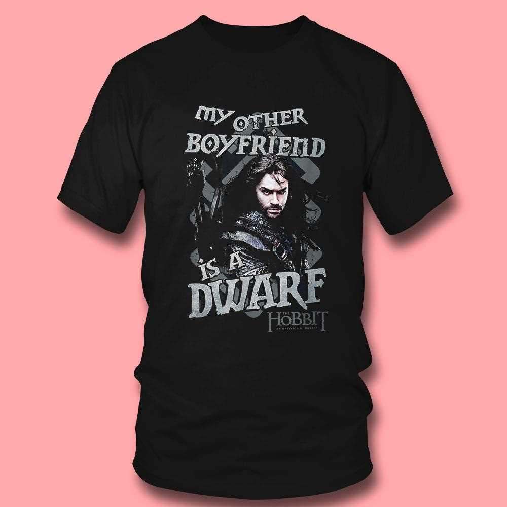Declare your unique taste in fantasy companions with “The Hobbit My Other Boyfriend Is A Dwarf Kill Tee”! This hilarious and charming design is perfect for fans of “The Hobbit” and “Lord of the Rings” who have a soft spot for the brave, often grumpy, and always loyal dwarves. The witty slogan is accompanied by a subtle graphic, perhaps a dwarven axe or a familiar silhouette, making it a playful nod to the beloved characters. Crafted from soft, breathable cotton, this T-shirt offers comfort and a good laugh. It’s a fantastic way to show your love for Middle-earth and your appreciation for its most stout inhabitants. Don’t let your dwarf go unnoticed! Grab your The Hobbit My Other Boyfriend Is A Dwarf Kill Tee and proclaim your dwarven affections!. T-shirt !