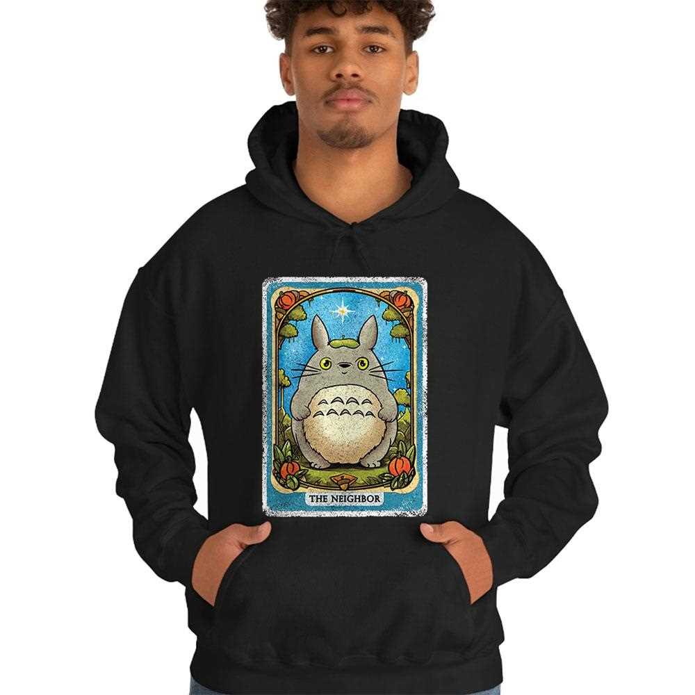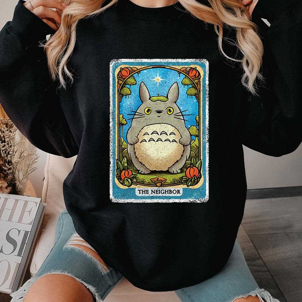 The spirits of the forest are calling. This beautiful t-shirt depicts the lovable Totoro as “The Neighbor,” a gentle and powerful tarot card. The artistic, mystical design captures the wonder and magic of the Studio Ghibli classic, making it a must-have for any fan. Let your spirit guide you… to the checkout. This is the perfect tee for any fan of My Neighbor Totoro and whimsical, artistic design. Add a little magic to your wardrobe today!.