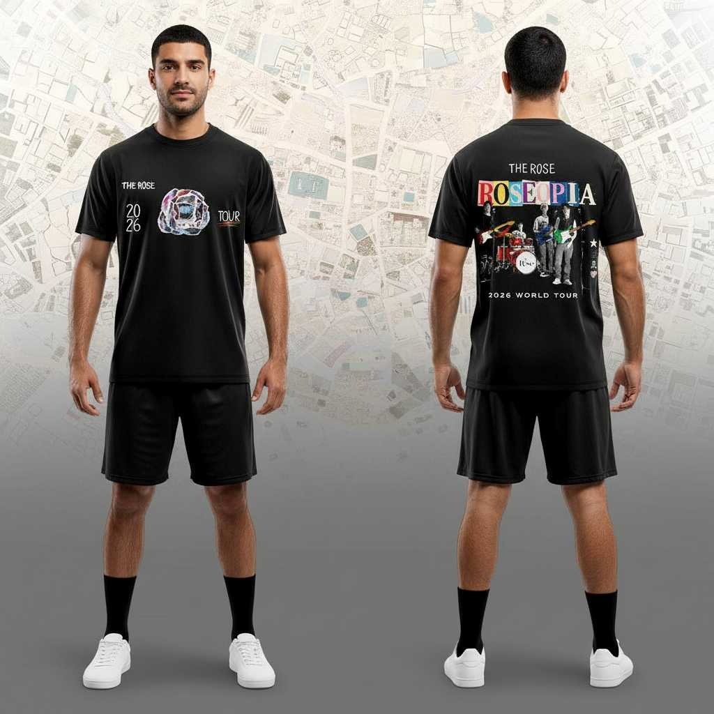 Enter the floral and melodic world of “Rosetopia” with The Rose Rosetopia 2026 World Tour Tee Hoodie. This exquisite piece of merchandise is designed for the “Black Rose” fandom, featuring a dreamlike aesthetic that matches the band’s emotive sound. The front showcases a delicate rose emblem intertwined with the “Rosetopia” title in an elegant, modern font.